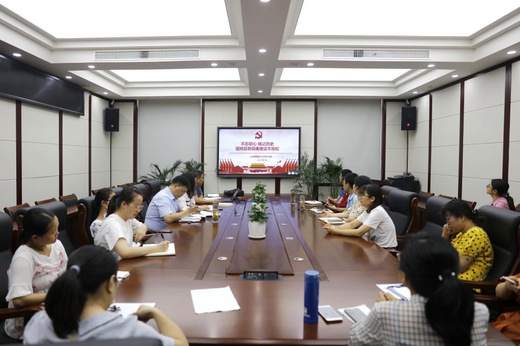 2021年7月14日下午3点,公共服务教工党支部在纺工附楼205会议室召开党史学习教育专题组织生活会,支部21名党员同志参加了会议。
