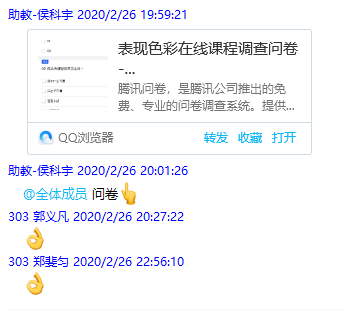 为确保线上教学有序开展,任课教师普遍提前半个月认真研究线上教学的特点并有针对性地做好授课准备,包括提前建好课程群,收集、整理、上传教学资料(教学大纲、电子版教材、课件、参考书籍等)。开课期间,严格按照教学计划开展线上教学工作,包括认真发起签到、组织讨论和布置课后作业。
