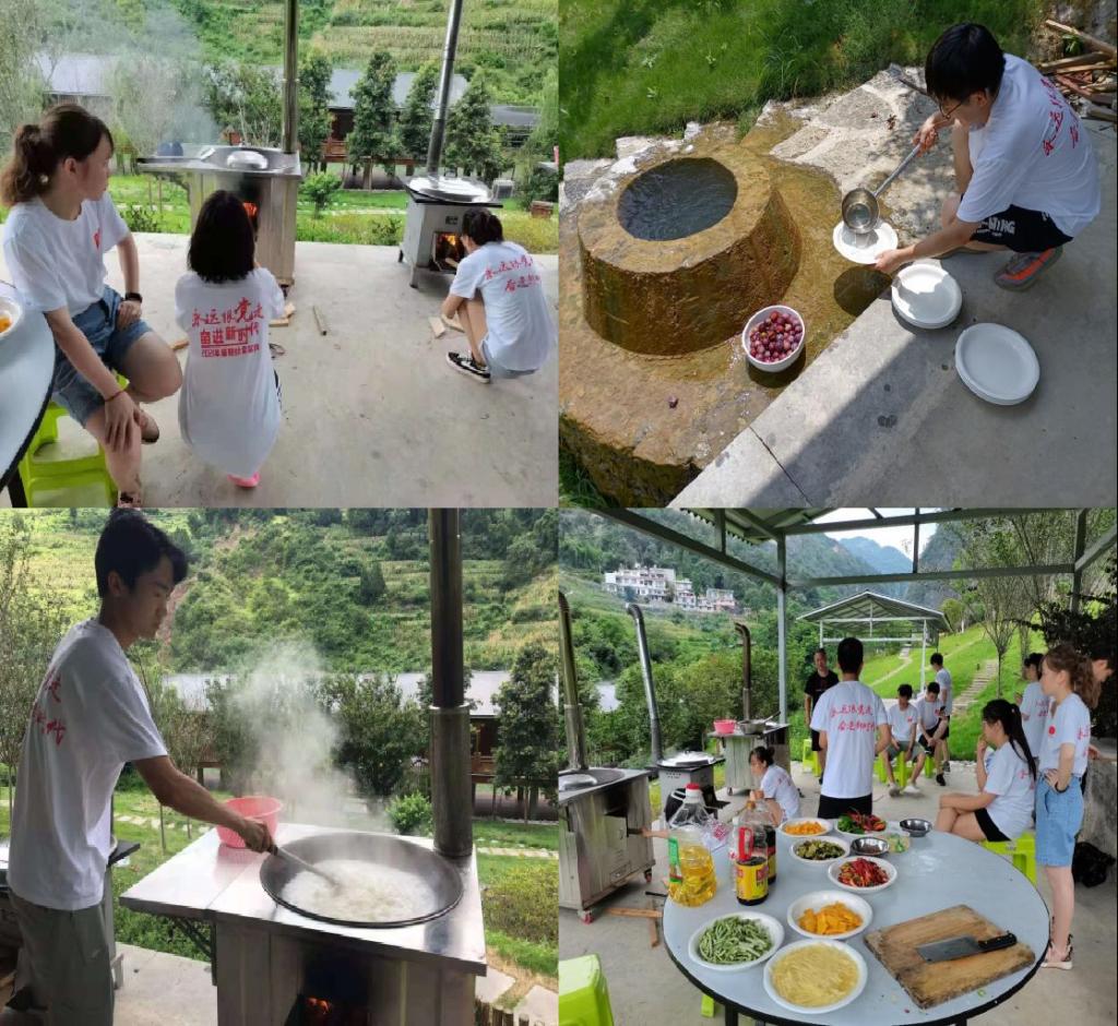 实践团成�在社会实践中边走、边看、边想、边提高�红军行军当年吃什么,这是�95后”实践团成员一直关心和念念不忘的。行程前,实践团成员饶有兴趣查阅了相关历史资料,来自食品专业的两位同学,�专业知识和当地红色文化相结合为实践团制定了红军餐食谱。其中,红苕饭、南瓜汤和秋茄子是红军餐的三大主角�7�25日中午,实践团同�按照既定计划分工合作,有的下地采摘当季新鲜蔬菜,有的生火煮饭,有的切菜洗碗,有的大厨现身,各自专注着手中的活。他们是家里��95后”,此刻却是红军战士,排除万难生火灶饭,只想用自己的双手亲自做一桌“红军餐”�