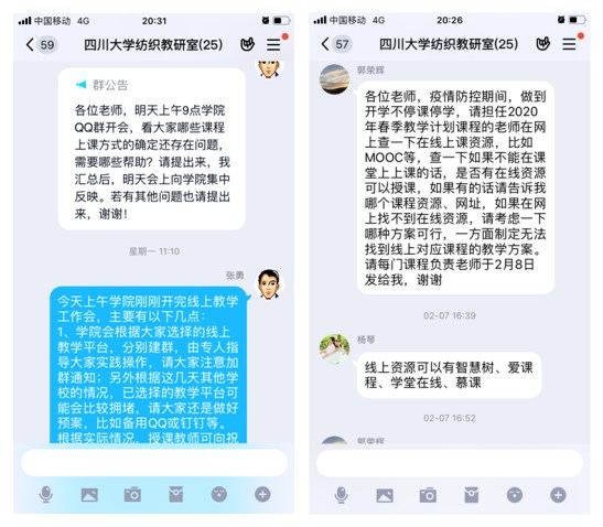 不停课、不停学的要求,纺织工程教研室于2020年2月初先后多次召开线上教学研讨会,部署线上教学活动。并组织老师学习爱课堂、学习通、腾讯会议等线上教学工具,对遇到的问题进行答疑,确保每门课程都进行了妥善安排,落实了线上教学方案。