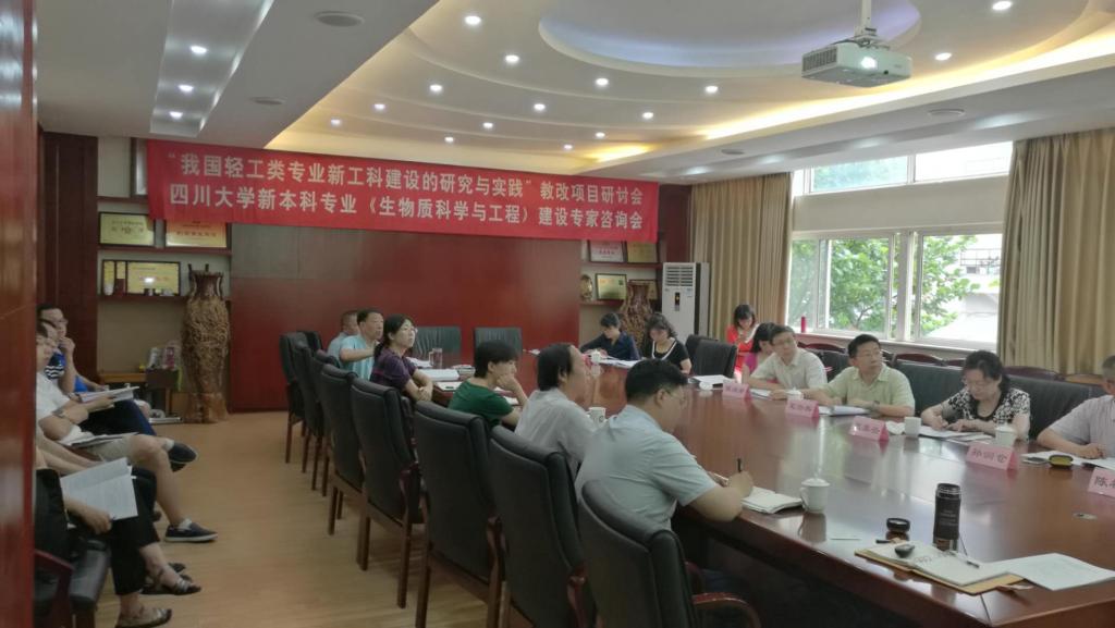 On June 20, 2018, under the convening and presiding of the project leader, Academician Bi Shi, the state-level new engineering teaching reform project seminar of college of Light Industry, Textile & Food Engineering——“Research and Practice on the Construction of New Engineering in Light Industry in China” and “Research and Practice on Transformation and Upgrade of Traditional Textiles in Textiles” and the new undergraduate major "Biomass Science and Engineering" construction expert consultation meeting was successfully held in conference room 209. The external experts attending the conference included Professor Meiyun Zhang, former vice president of Shaanxi University of Science and Technology, Professor Hongzhang Chen from the Institute of Process Control of the Chinese Academy of Sciences, Professor Runcang Sun from Beijing Forestry University, and Professor Lihui Chen from Fujian Agriculture and Forestry University. The school's experts included Professor Yunbing Wang, a Thousand person program scholar of the Center for Biomaterials, Professor Qun Sun, School of Life Sciences. Associate Professor Dan Li and Associate Professor Jianmei Li. Professor Xiaohu Liu, deputy professor of the Party Committee of the College of Light Industry,  Textile & Food Engineering, Professor Youjie He, dean of the college, Professor Biyu Peng, deputy director of teaching, and related teachers of the Department of Biomass and Leather participated in the seminar.
