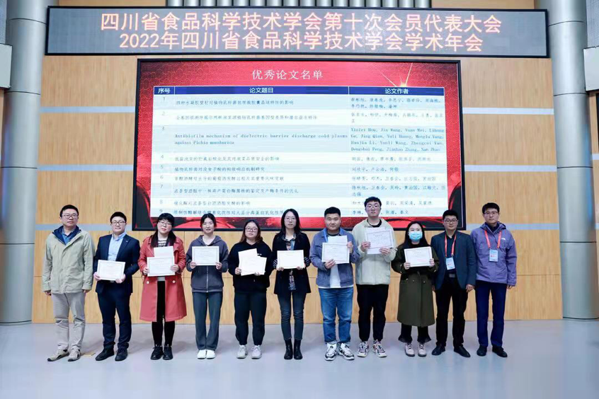 四川大学轻工科学与工程学�2020级研究生胡容《低盐泡菜的贮藏后酸化及其对泡菜品质安全的影响》�2020级研究生和木文《糖化酶对浓香型白酒酒醅发酵的影响》�2021级研究生刘欣宁《植物乳杆菌对没食子酸的构效影响机制研究》在本次学术年会会议上被评为“优秀论文”�
