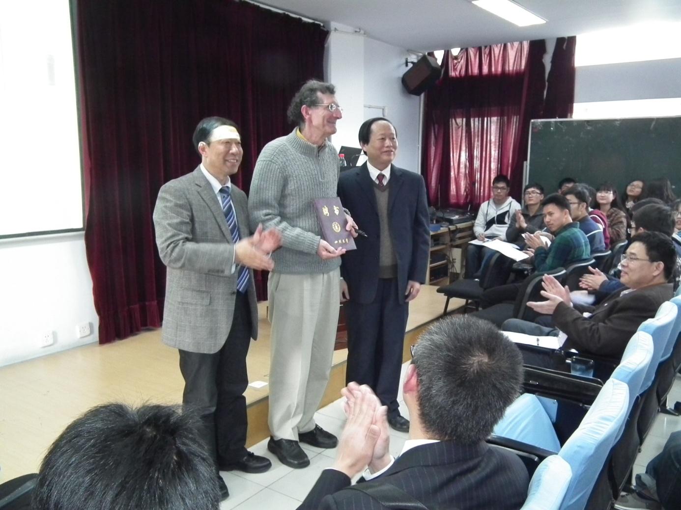 院长何有节教授致欢迎辞,并代表四川大学向Didier Astruc教授颁发了客座教授聘书。重点实验室主任范浩军教授、生物质与皮革工程副主任彭必雨教授等教师和学生聆听了Didier Astruc教授的精彩报告。Didier Astruc教授从金属有机化学的角度介绍了树状大分子(dendrimer)的合成及功能化修饰,并对树状大分子的历史、关联、拓扑学、功能和应用进行了梳理;详细讲述了其课题组在金属有机树状大分子、纳米金属粒子的制备及在电化学识别等方面所做的前沿性研究工作,特别介绍了以树状大分子包裹具有催化作用的纳米金属粒子以及金属有机聚合物,作为纳米反应器催化各种不同的化学反应,最后对纳米功能材料的分子设计及纳米催化进行了展望。Didier Astruc教授的报告幽默风趣,内容深入浅出,激起了在座老师和同学的浓厚兴趣,通过面对面地交流,拓宽了8bo足球即时比分