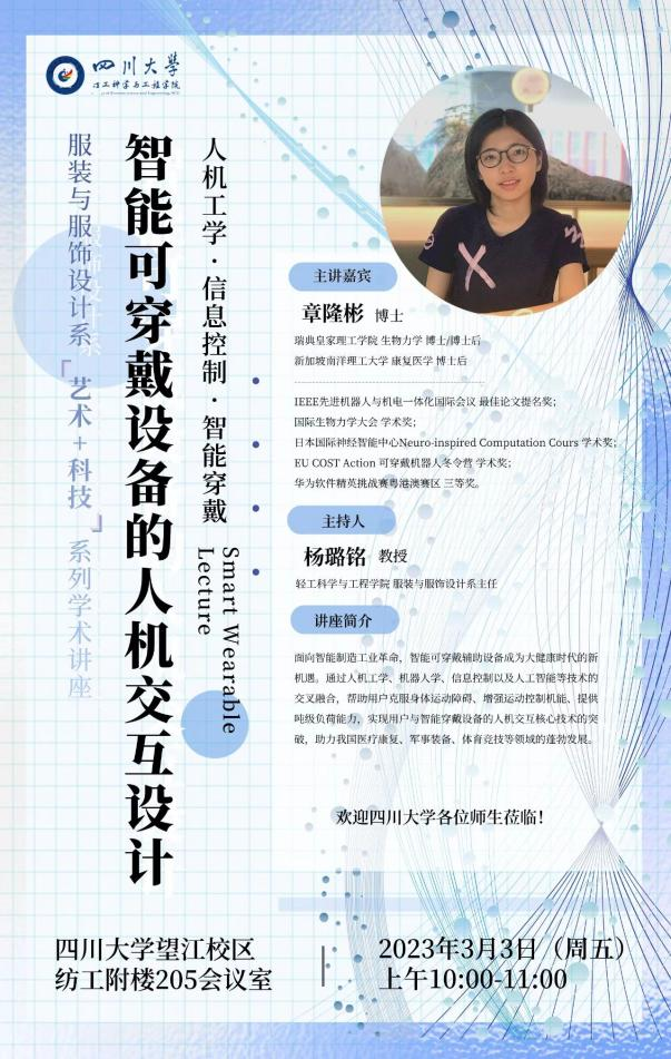 服装与服饰设计系“艺�+科技”系列学术讲座之——“智能可穿戴设备的人机交互设计�-轻工科学与工程学� <#webadvjs#>