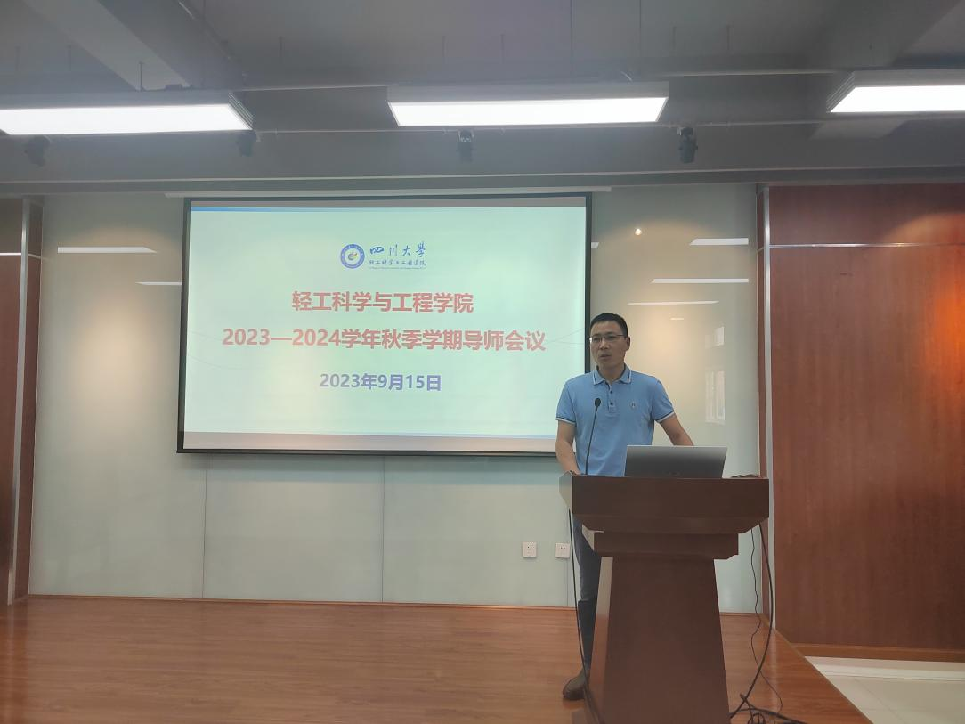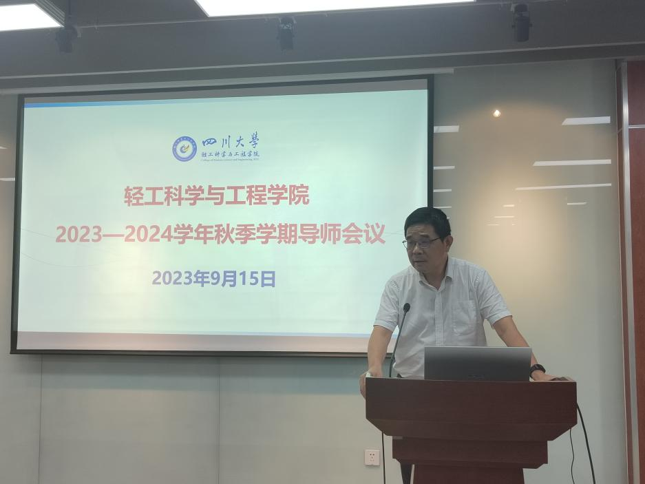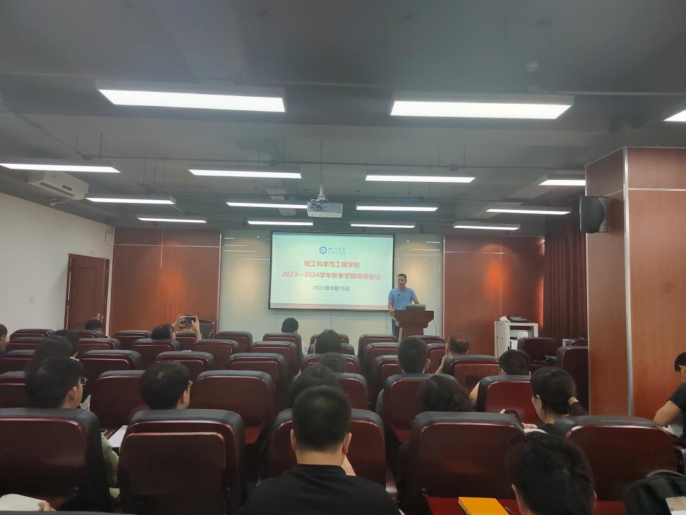 为明确班主任、导师工作职责,见面会前,学院举行了全体导师会议。彭必雨院长向全体导师传达了学校和学院新学期工作部署安排,并�2023级本科生导师制提出了工作要求。冯国涛副书记全面介绍了学院本科生近年培养情况�2023级本科生录取情况以及导师的主要内容,并希望全体导师密切加强和辅导员、班主任工作联动,深入落实“爱生如子”的工作要求,助力每一位“轻工学子”成长成才!