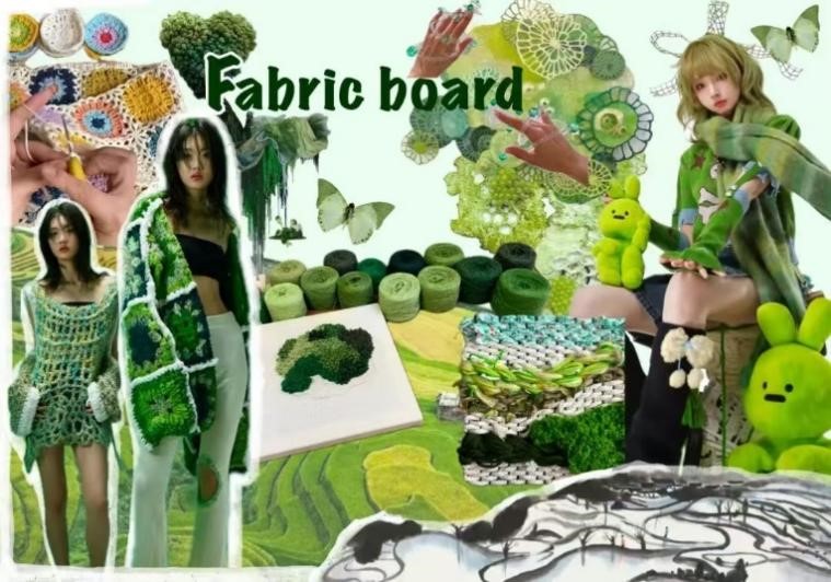 《大地调色板》系列服装,设计灵感源于农田景观,学生们通过拼布与毛毡等工艺,将大地的丰富色彩与纹理运用到服饰设计中。该系列作品不仅在色彩和材质上展现出大自然的独特魅力,更表达出尊重自然、热爱生活的设计理念。
