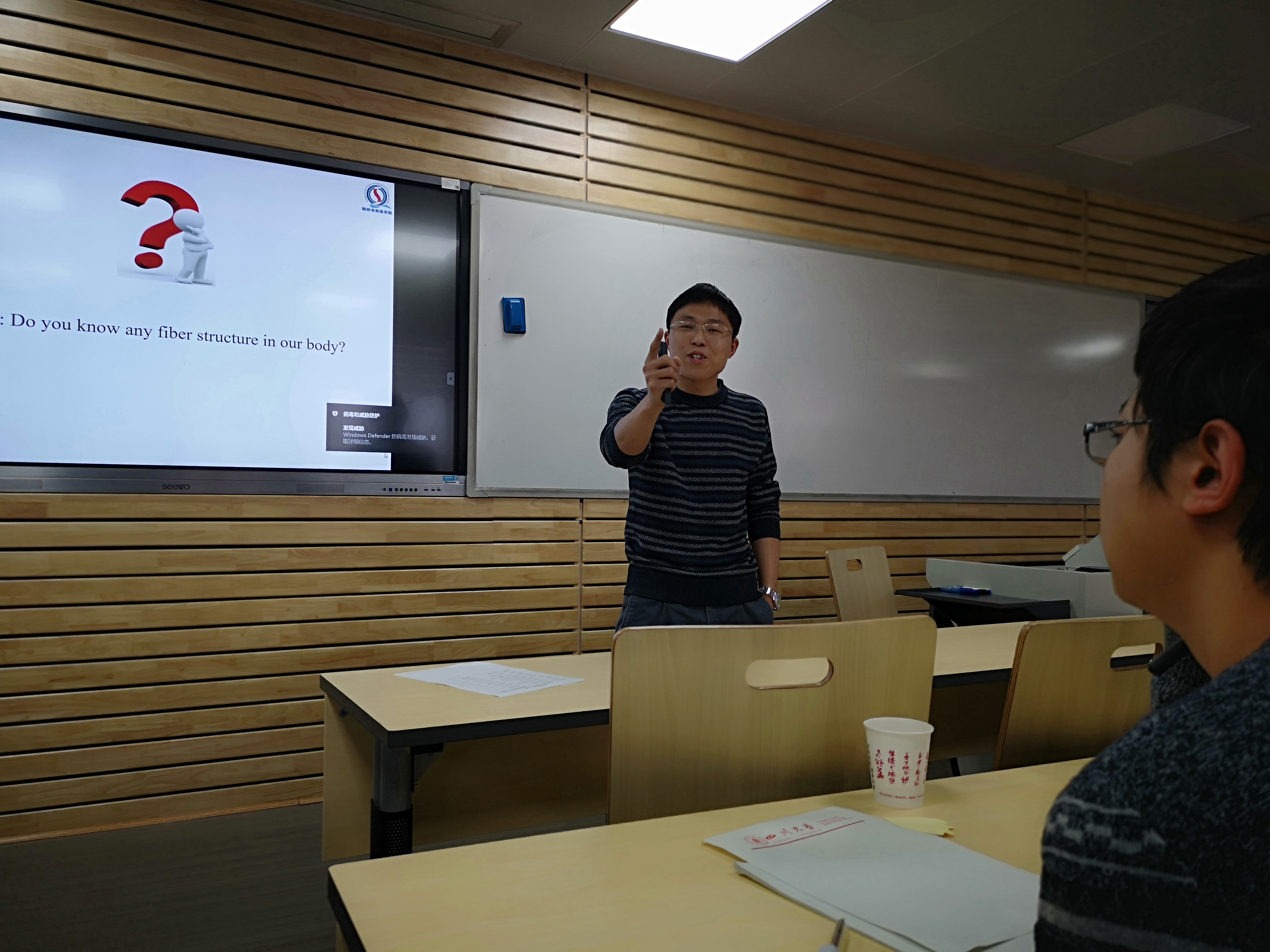 现场比赛环节由教师进行10-15分钟授课。参赛教师们精心制作了赛课PPT,巧妙地运用启发式讲授,通过一个个设问引导学生不断思考,学生代表们也予以积极回应,比赛现场可谓是精彩纷呈,吸引了不少在周边教室上自习的学生前来旁听。
