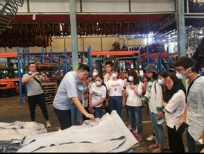 在现代染料股份有限公司的精心安排下,同学们先后参观了现代染料股份有限公司�Classic Product ThailandCO., LTDCPL)和CHIN TEE HU Tannery公司,了解了染料的生产和制革的流程�CPL是一家泰国上市制革企业,以生产牛皮为主,月产量约200300万平方英尺,�Nikeadidas和法国鳄鱼的鞋革和箱包革的供应商�