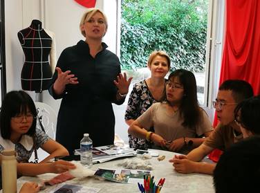 的老师从欧洲立体裁剪、灵感来源选取、款式设计、颜色搭配等方面进行了系统的讲授。同时还安排了关于面料工艺的讲座,让同学们与这方面的专家进行面对面交流和讨论。通过以上教学活动,同学们真切感受到了国内外关于服装设计教学内容与教学方式的不同,也对欧洲现当代时装设计理念和时尚前沿动态有了更深入的了解。