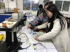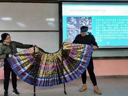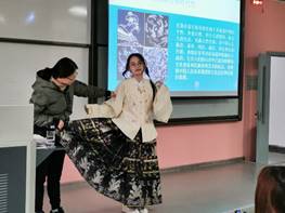 课程思政课程组与专业课主讲教师密切配合,深入挖掘思政元素,让思政内容在专业课程中入大纲、入课堂、入过程作业,同时也让专业课课堂内容更加丰富、课堂形式更加多元、课堂氛围更加活跃。在本学期所开设的《少数民族服饰》课程中,在讲授好中国传统知识的基础上,更从扎染、民族服饰——汉服等方面进行了详细的介绍,以培养学生的民族认同感与爱国主义情操。