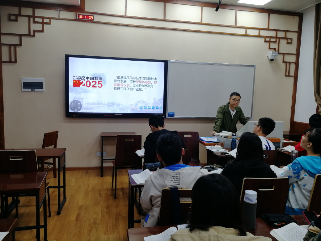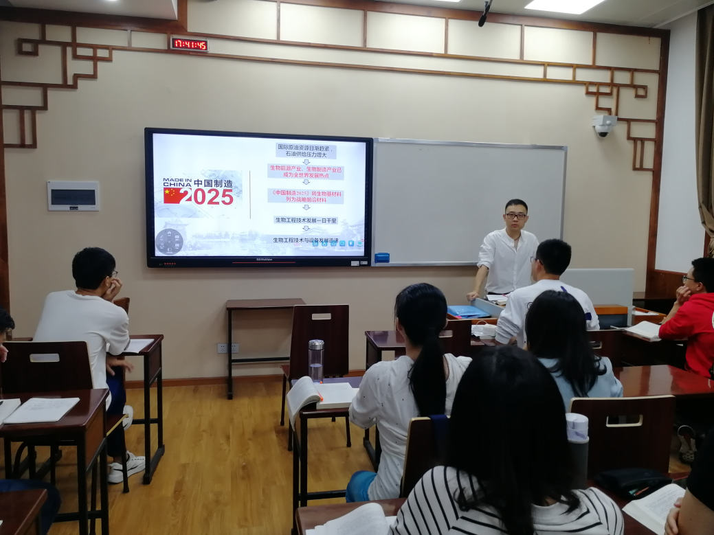 积极推进课程思政建设,在2018-2019学年秋季学期开设的《生物工程设备及过程控制》课程中融入了课程思政相关内容。在教学过程中教师将《中国制造2025》的战略方针贯穿到每次授课中,努力实现全程育人、全方位育人的教育理论。相关章节教学内容引起了学生们的共鸣,并引发了学生们的广泛讨论。