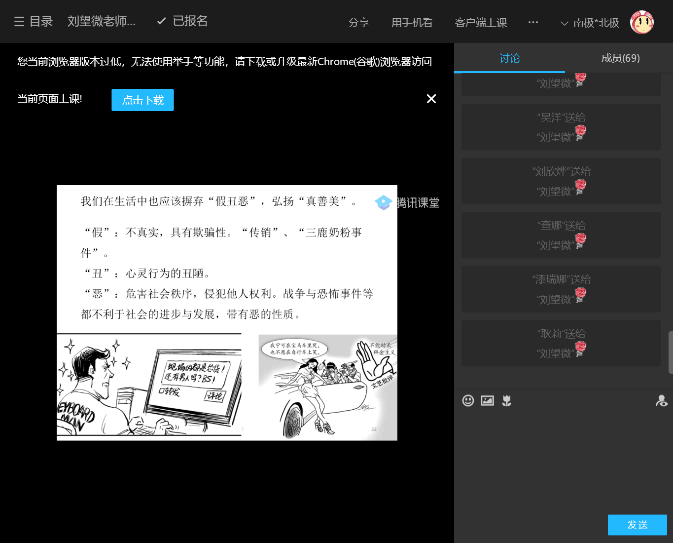 因此次课程的讲授正值疫情防控期间,所以采用线上讲授与课堂讨论、随堂测试等相结合的方式进行授课,加深同学们对服饰美的理解和运用。通过此次课程的讲授,将美育教育贯穿于课程教学全过程,培养了学生从学会欣赏服饰美到认识美、爱好美与创造美的过程,增强了学生的美育意识与美育能力,为培养德智体美劳全面发展的人才提供了重要的课程载体。