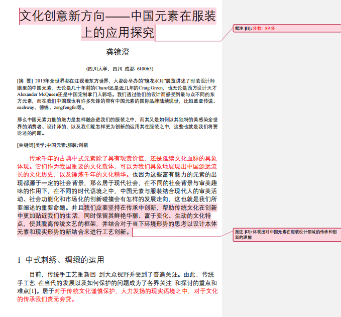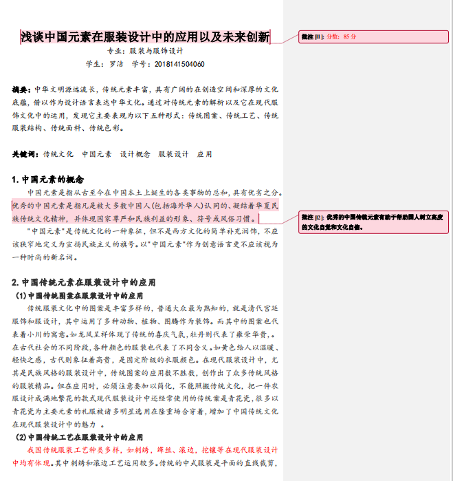 通过此课程与思政内容的有机结合以及师生间身心互动的教学形式,同学们也对“中国元素在服饰设计中的应用形式”以及“还有哪些中国元素可以被开发应用于服饰设计中”等问题开展了热烈讨论。在专业课程中通过科学合理的教学方法传递知识,提升了同学们的思政水平、人文素养与能力素质,真正实现了专业教育与思政教育协同发展的良好效果。