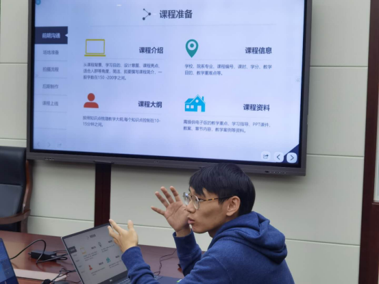 接着由杨恒编导站在专业制作团队的角度,把慕课建设的前期沟通、场地准备、拍摄流程、后期制作、课程上线等流程进行了逐一讲解,让老师们对慕课制作有一个全面的了解,清楚课程团队与制作团队的分工,明确工作重点,畅通沟通渠道。