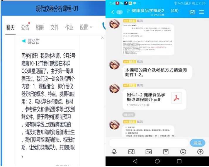 从开学教学检查情况来看,学院线上教学秩序总体良好,教师精神饱满,学生积极主动,大部分课程到课率达100%,甚至吸引到其他专业的学生试听。在平台的使用上�QQ群和腾讯会议软件操作简便,授课过程流畅,使用比例高�95.5%。任课老师采用多种形式的教学手段进行有效互动,学生参与度高。如:何强教授的《食品化学》课程,设置“联席主持人”,协助任课老师进行线上教学准备与学生到课情况检查;周荣清教授的《生物反应工程》课程,到课�100%,课堂秩序良好,周教授站在行业的高度,为学生上了生动的生物反应工程第一课,有利于引导学生的学习兴趣和对专业的热爱;迟原龙副教授的《食品微生物学》课程,采用线上签到,学生到课率高、教学秩序良好,观看短视频增加学生对知识的感性认知,教师通过课堂提问与学生进行互动;时昱老师的《时装作品集制作》课程,问题设计巧妙,与学生互动良好,课堂氛围活跃等�