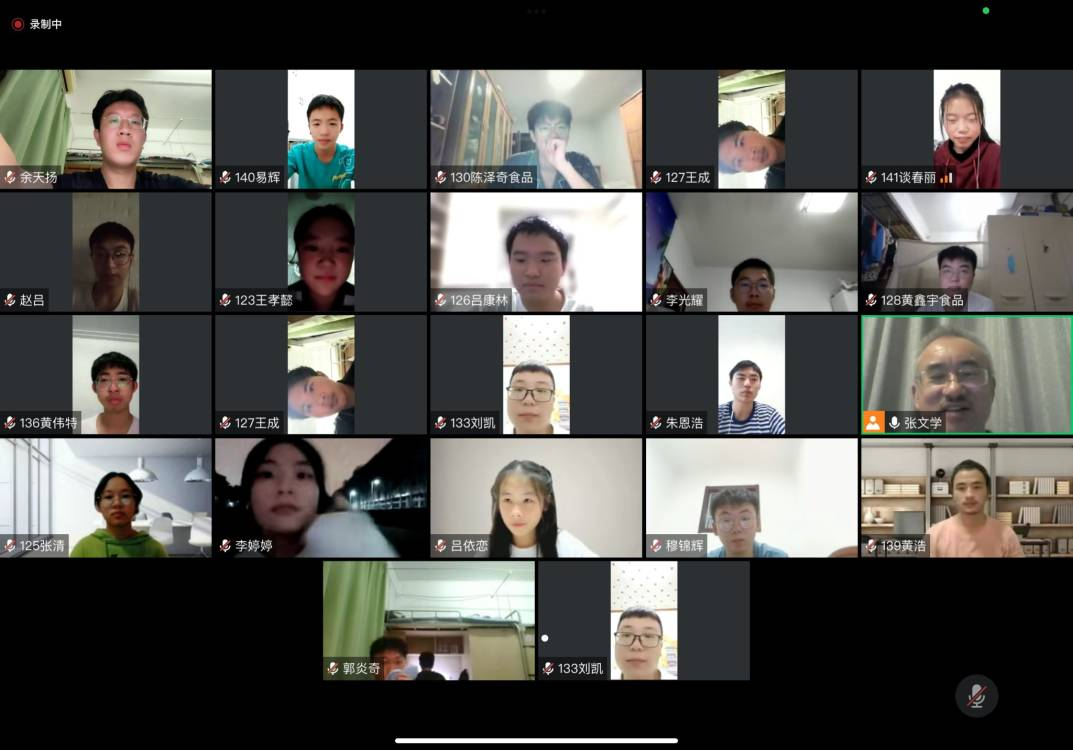 2022级201班通过腾讯会议在线上举行首次班会,班主任张文学老师与来自五湖四海的21位同学在网络平台欢快地相聚一堂。