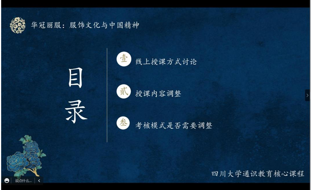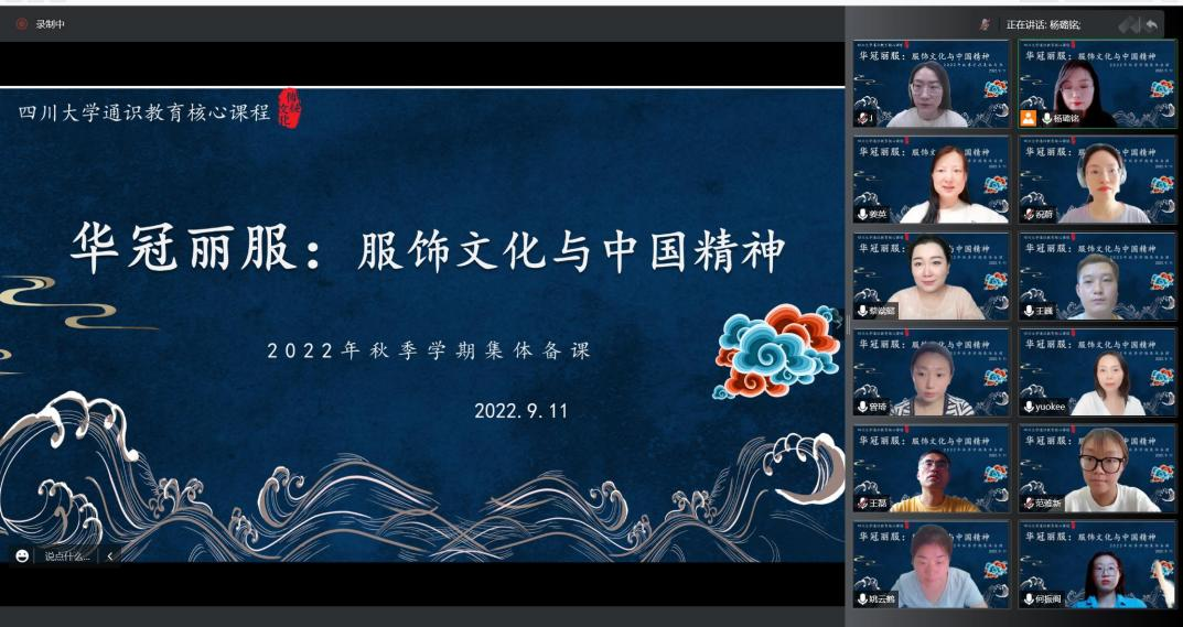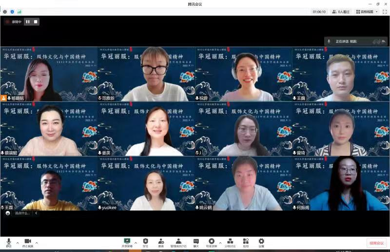 、多学科的交叉融合,保证“华冠丽服:服饰文化与中国精神”课程在新一学期的顺利高效开展,便于课程组教师根据学情对课程内容及授课方式进行针对性调整,保障课程线上教学效果,课程组于2022年9月11日在腾讯会议开展本学期第一次集体备课活动。在此次活动中,课程组对本学期上课形式、课程内容、过程考核方式、期末考核标准等方面统一了思想。