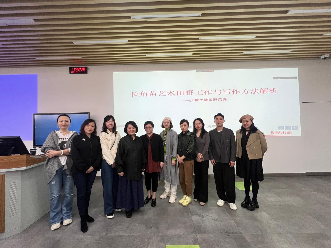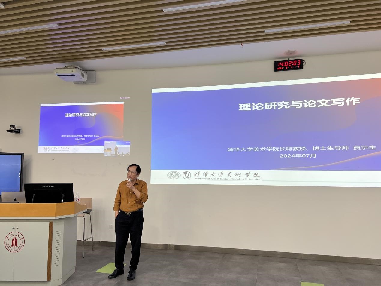 在“研究方法与论文写作”方向,清华大学美术学院博士生导师贾京生教授(清华大学印染实验室主任)于2024�9�4日以《理论研究与论文写作》为题,分享了贵州白裤瑶的田野调查与学术论文写作;清华大学美术学院博士生导师方晓风教授(CSSCI收录期刊《装饰》杂志主编)�2024�9�5日以《设计研究新范式》为题,讲解了设计学科研究范式的发展历史与最新动向;中国艺术研究院研究员、东南大学特聘首席教授、博士生导师方李莉教授(中国艺术人类学学会会长)�2024�10�11日以《长角苗艺术田野工作与写作方法解析》为题,分享了艺术人类学的理论、实践与研究方法,并对贵州长角苗的艺术人类学田野调查进行了详细的讲解。三位专家学者的分享,赋能了师生在研究方法、研究理论视角、论文写作层面的科研思路�