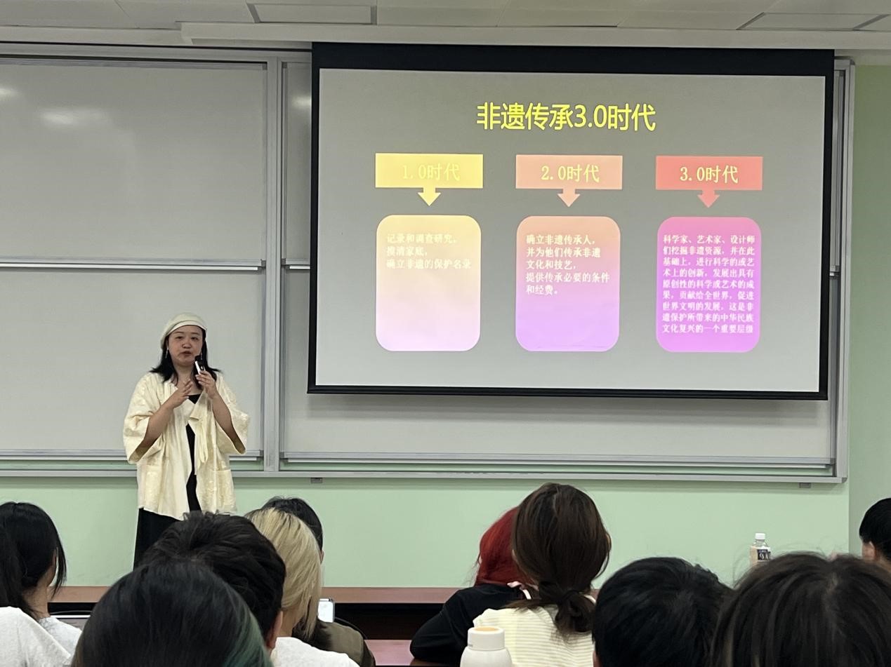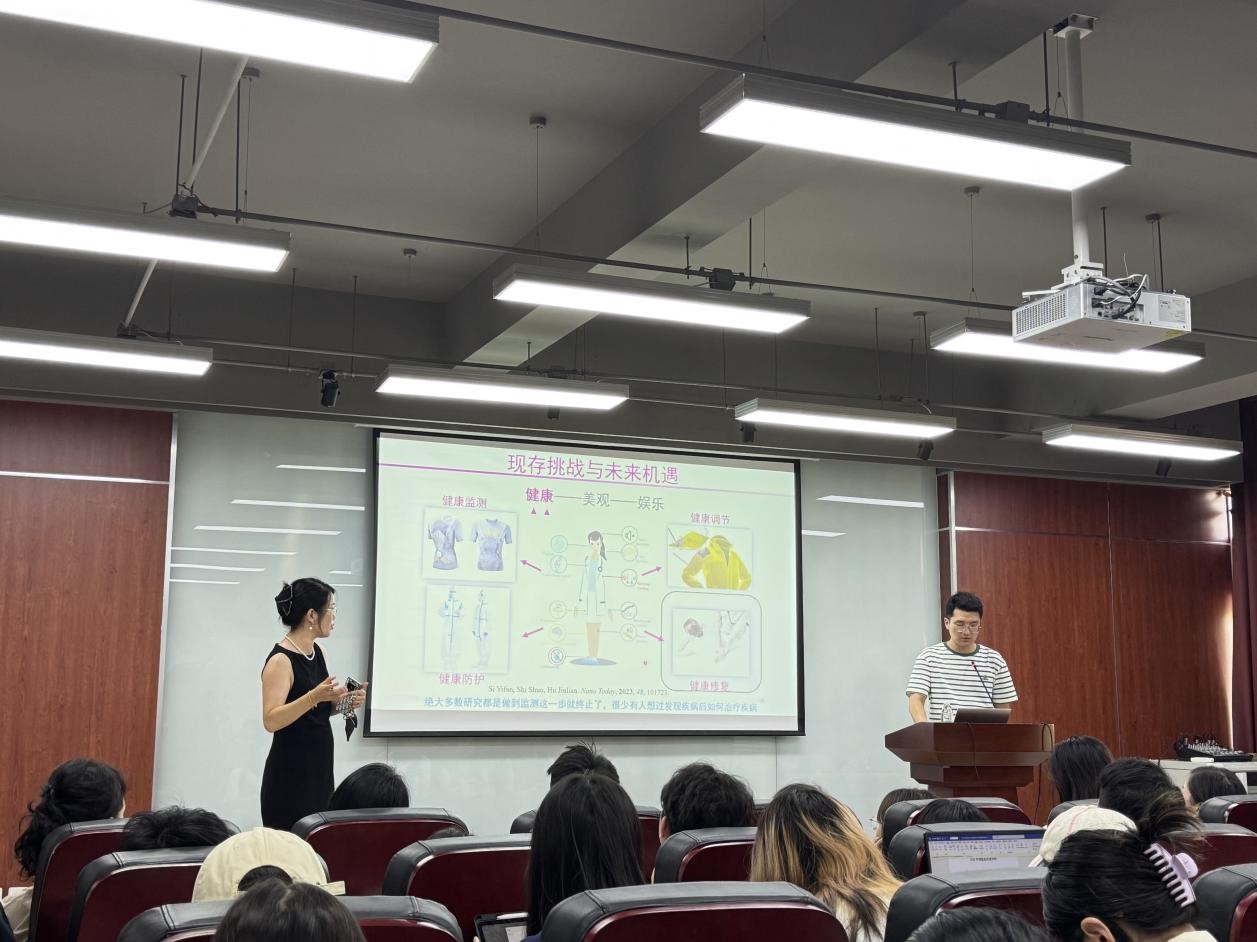 在“学科发展前沿与专业就业”方向,香港城市大学生物科学与工程系司一帆博士于2024�9�20日分享了仿生智能服饰与可穿戴诊疗的前沿科技,展示了仿生材料在智能服饰和可穿戴诊疗领域的最新进展;四川大学服装与服饰设计专业硕士毕业生、重庆云追月文化创意有限公司CEO刘珺琬于2024�9�26日以《非遗传�3.0时代下非遗设计师的创作之旅》为题,分享了从事非遗技艺传承与创新的实践经验;四川大学服装与服饰设计专业本科毕业生、Vogue时尚基金数字时尚方向奖项获得者、Amorphous studio虚拟时尚工作室创始人郑宸2024�9�26�27日以《时尚是一种媒介方式》、《数字服装行业发展分享》为题,分享了国际时尚从业经验。两位本专业的优秀毕业生通过生动的讲座内容为学生提供了鲜活的行业洞察�