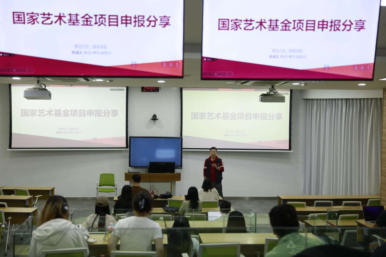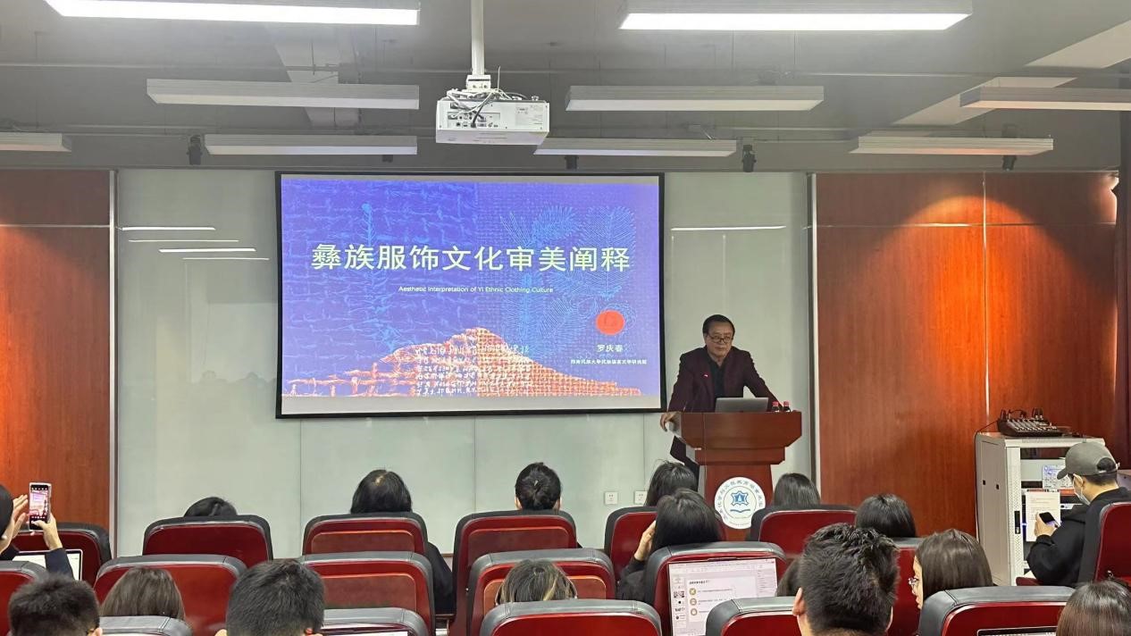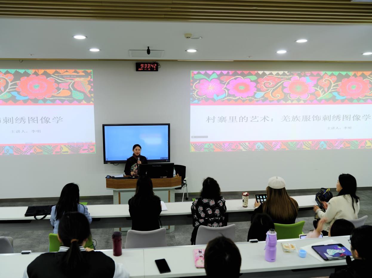 在“学科建设与科研项目申报”方向,青岛大学博士生导师、设计学科学术带头人张成义教授(青岛大学民族服饰文化设计研究中心主任)于2024�9�29日以国家社科基金和国家艺术基金的优秀申报书为例,从项目选题、申报书写作、项目实施与结项环节分享了申报和执行重点科研项目的体会,为教师和学生提供了宝贵的指导;西南民族大学民族语言文学研究院院长、博士生导师罗庆春教授于2024�11�8日以《中华文明背景下彝族文化的传承与传播》为题,从文字、语言、文学、服饰审美等层面深入分析了彝族文化,对设计学科发展中的民族文化传承与传播提出了建设性的意见和建议;中国羌族博物馆副馆长、阿坝州政协委员、羌族文化研究资深专家李明研究员�2024�11�15日以《村寨里的艺术:羌族服饰刺绣图像》为题,分享了国家社科基金艺术学项目完成过程中的田野调查内容,分析了羌族服饰刺绣图像的应用场景和文化内涵,为师生申报、实施相关研究项目提供了宝贵的经验与参考�