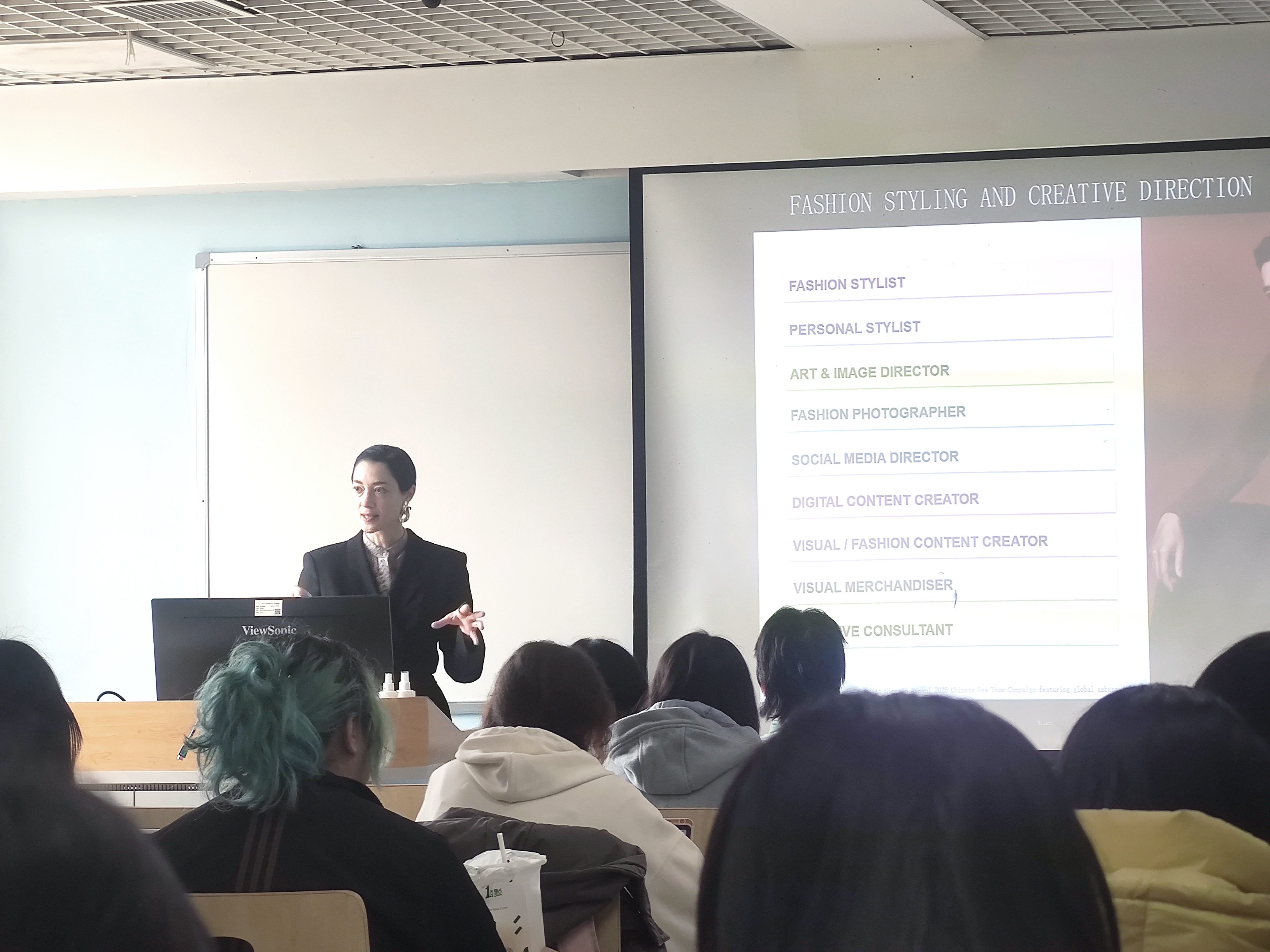 Sadino女士以“传统与创新的融合”为切入点,深入探讨了在科技飞速发展与市场需求不断变化的当下,时尚行业所面临的机遇与挑战,详细介绍了虚拟试衣、虚拟模特、AI驱动的趋势预测等新兴技术在时尚领域的应用前景。在职业前景的介绍中,她还立足时尚设计、时尚造型、时尚管理三大职能,详细讲解各类岗位的主要职业和所需技能。