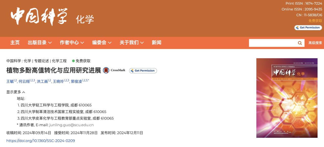 8bo足球即时比分 郭俊凌教授在《中国科学:化学》发表专题论述:植物多酚高值转化与跨领域应用研究进展