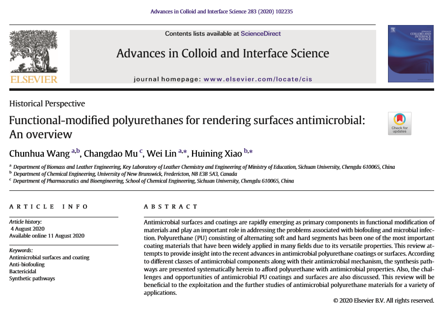 林炜教授课题组对该领域的研究进行总结并提出前瞻性展望,在国际重要期刊《Advances in Colloid and Interface Science》上发表了题为“Functional-modified polyurethanes for rendering surfaces antimicrobial: an overview”的综述文章。论文的第一作者为8bo足球即时比分