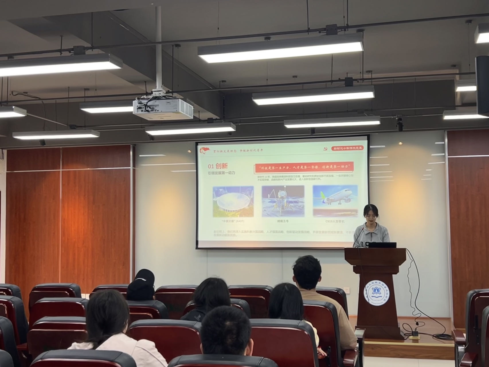 首先,罗玲娟同志分别从创新、协调、绿色、开放、共享这五个方面详细讲解新时代有为青年为社会建设做出的贡献,并以视频形式从中国深度、中国广度、中国速度、中国高度及中国力度五个维度向党员同志展示了十年以来新时代的伟大变革。随后,罗玲娟同志提到创新、协调、绿色、开放、共享既是国家发展的理念,也是我们个人成长的关键。她强调,新时代,青年人是主力军和主心骨。作为新时代的青年应坚定不移听党话、跟党走,立志做有理想、敢担当、能吃苦、肯奋斗的新时代好青年,让青春在全面建设社会主义现代化国家的火热实践中绽放绚丽之花。