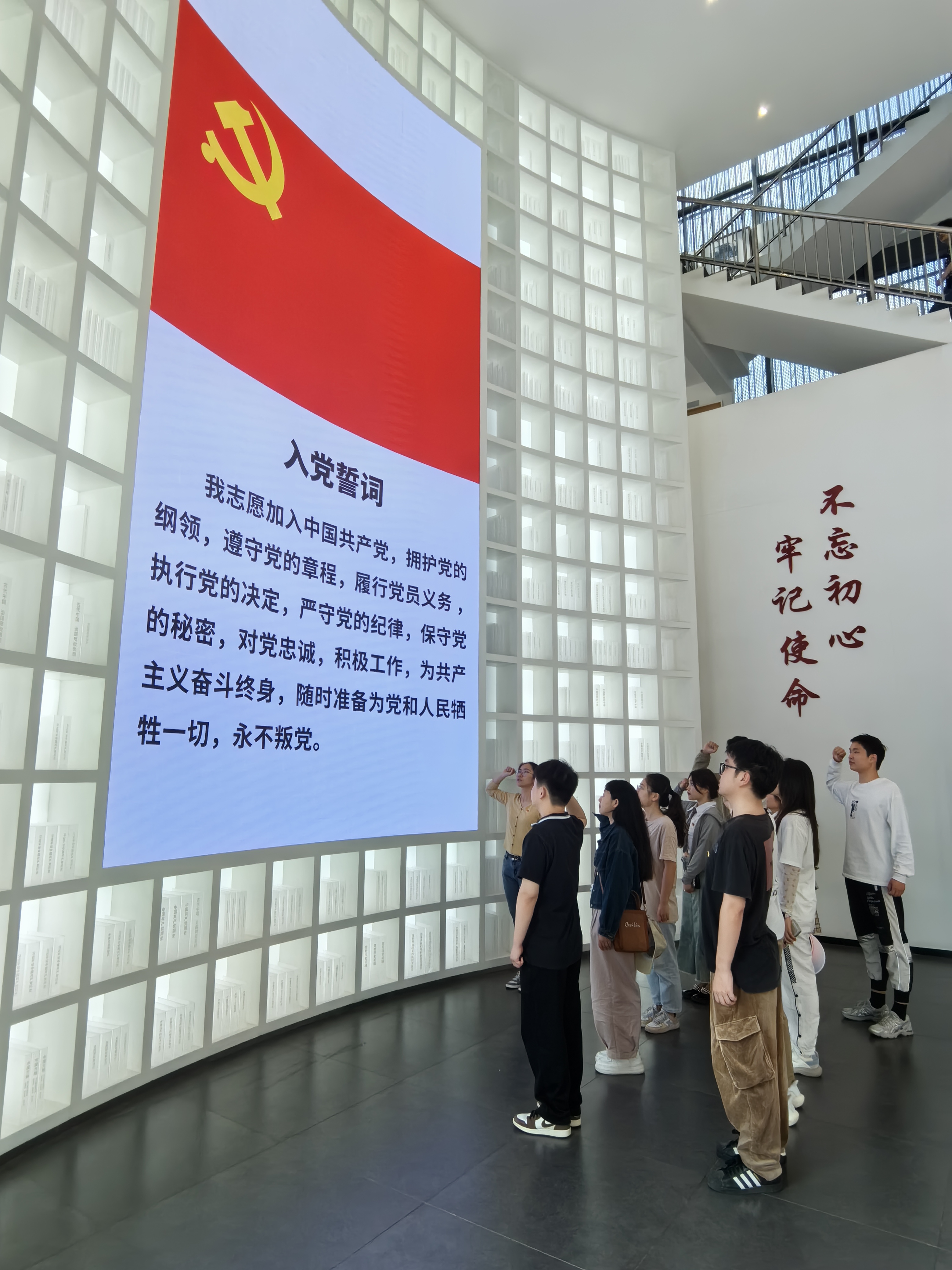 最后,党支部全体成员在展览大厅举行了重温入党誓词宣誓仪式。重温入党誓词活动,使每一位党员更加坚定自己的理想信念,无论以后在何时何地,都能做到不忘初心,真正发挥共产党员的先锋模范带头作用。