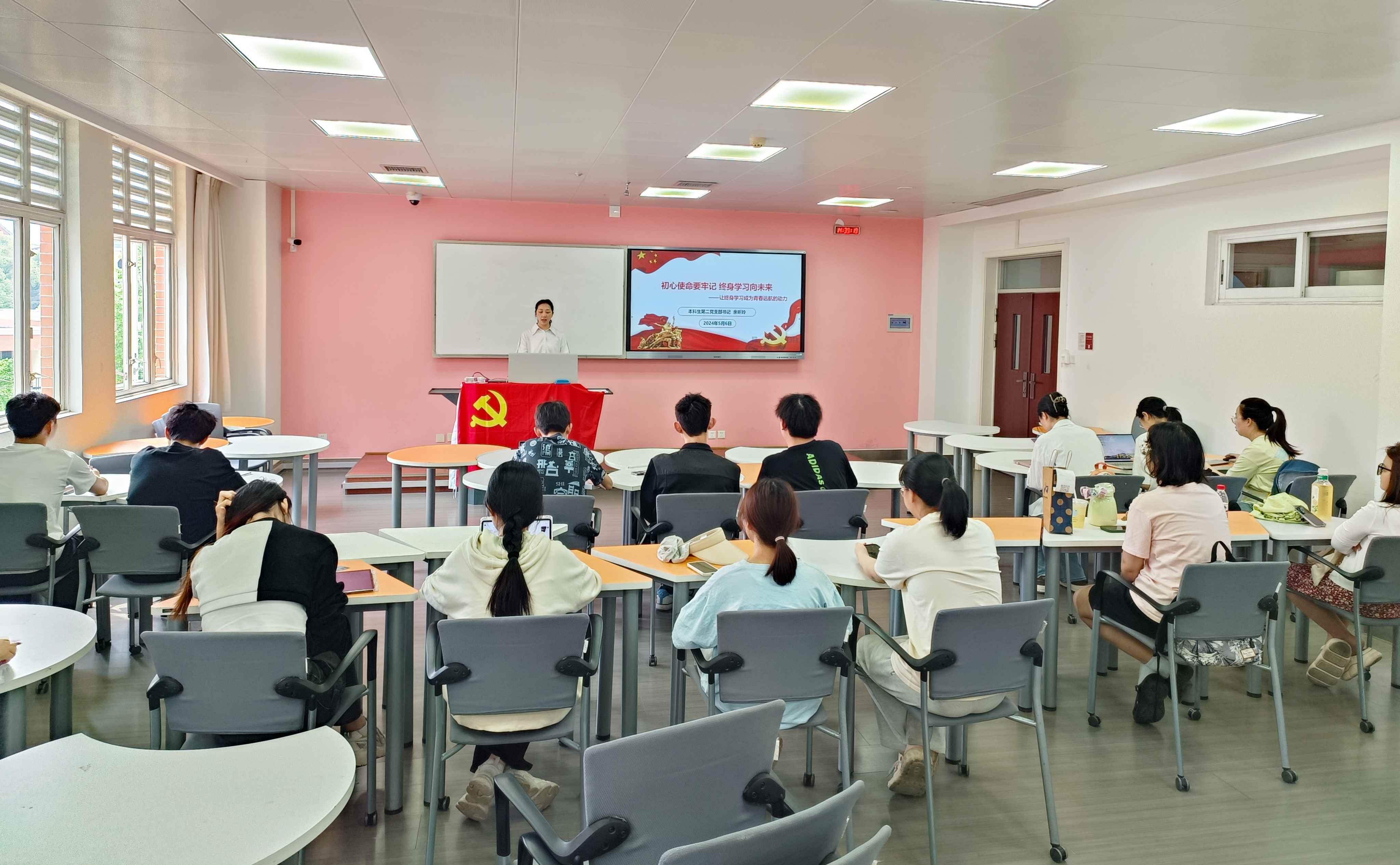 本科生第二党支部在望江校区基础教学楼A412举办“初心使命要牢记,终身学习向未来”专题党课,响应落实构建“全民终身学习的学习型社会、学习型大国”教育体系,树立终身学习观念,增强党员自身学习能力提升。本次党课由党支部书记余昕玲老师主讲。