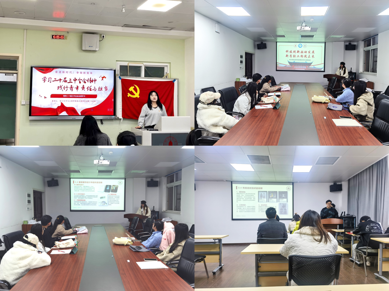 宣讲活动由8bo足球比分 分团的许艺泷、刘和峻、郭文杰、王妍妍、黄思颖等多名同学担任主讲人,聚焦《中共中央关于进一步全面深化改革 推进中国式现代化的决定》中的“构建支持全面创新体制机制”,结合8bo足球比分 的轻化工程、生物工程、食品工程、服装与服饰设计专业特色,就“轻工业领域如何推动科学技术创新、促进产业升级、发展新质生产力”这一问题进行了深入解读。主讲人首先对二十届三中全会精神和构建支持全面创新体制机制的重要意义、内在要求与重点任务进行了详细阐述,紧接着围绕“新质轻工”和“科技创新”,与各党支部同志深入探讨未来的皮革新产业、新型生物质领域、新型酿造食品业、未来的创新纺织技术等热点话题,最后希望党支部的各位同志都能在“构建支持全面创新体制机制”驱动下,勇担科创使命,构筑新质轻工,奋力谱写中国式现代化轻工业新篇章。