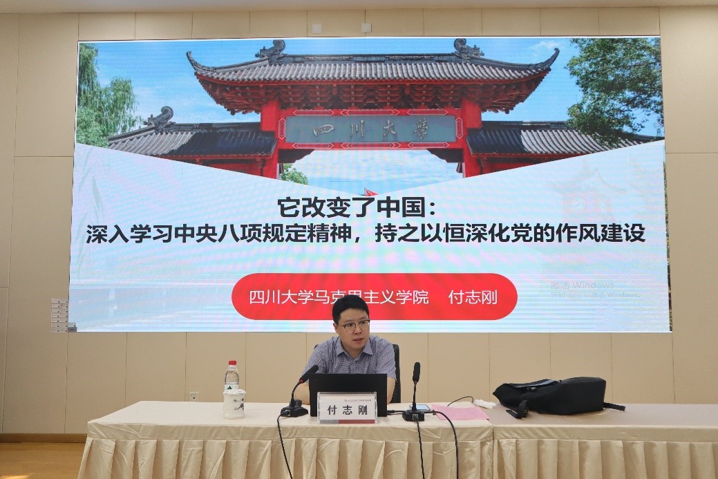 四川大学马克思主义学院付志刚教授围绕“中央八项规定精神与党的作风建设”进行专题授课,深入浅出地讲解了作风建设的重要意义和实践要求,强调要以典型案例开展学习教育,推进作风建设常态化长效化�