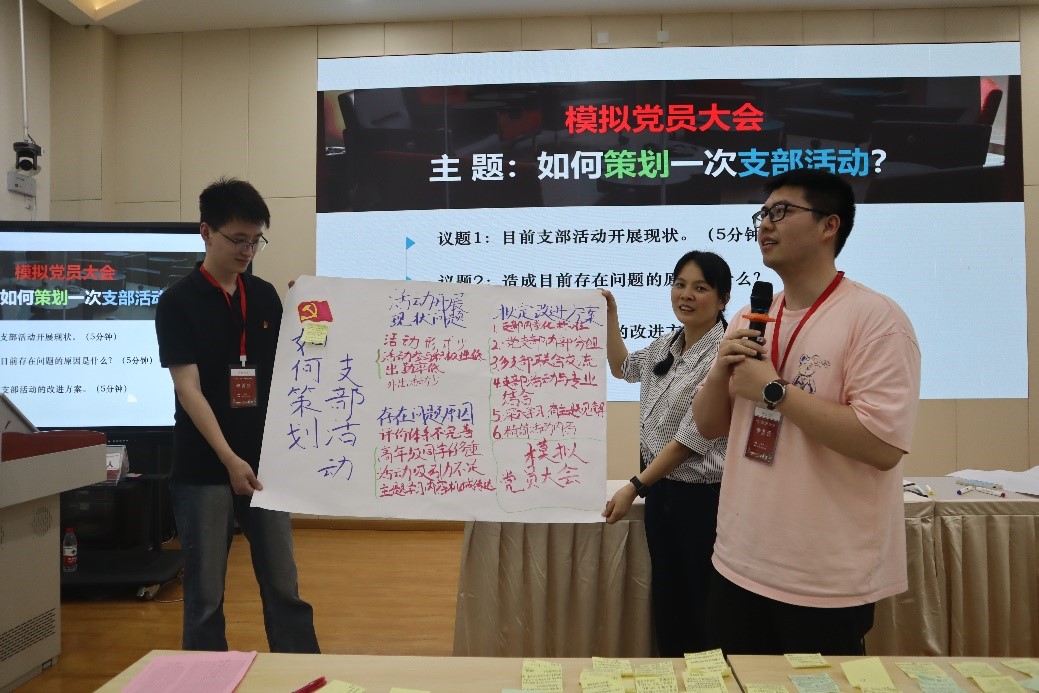 四川大学教育培训部第二党支部书记史梅就“如何策划一次支部活动”进行讲解,并组织模拟党员大会,随机选取三名学员组成支委,并与现场学员充分互动,围绕开展支部活动的难点及其原因展开深入交流,并就如何提升支部活动质量展开讨论�