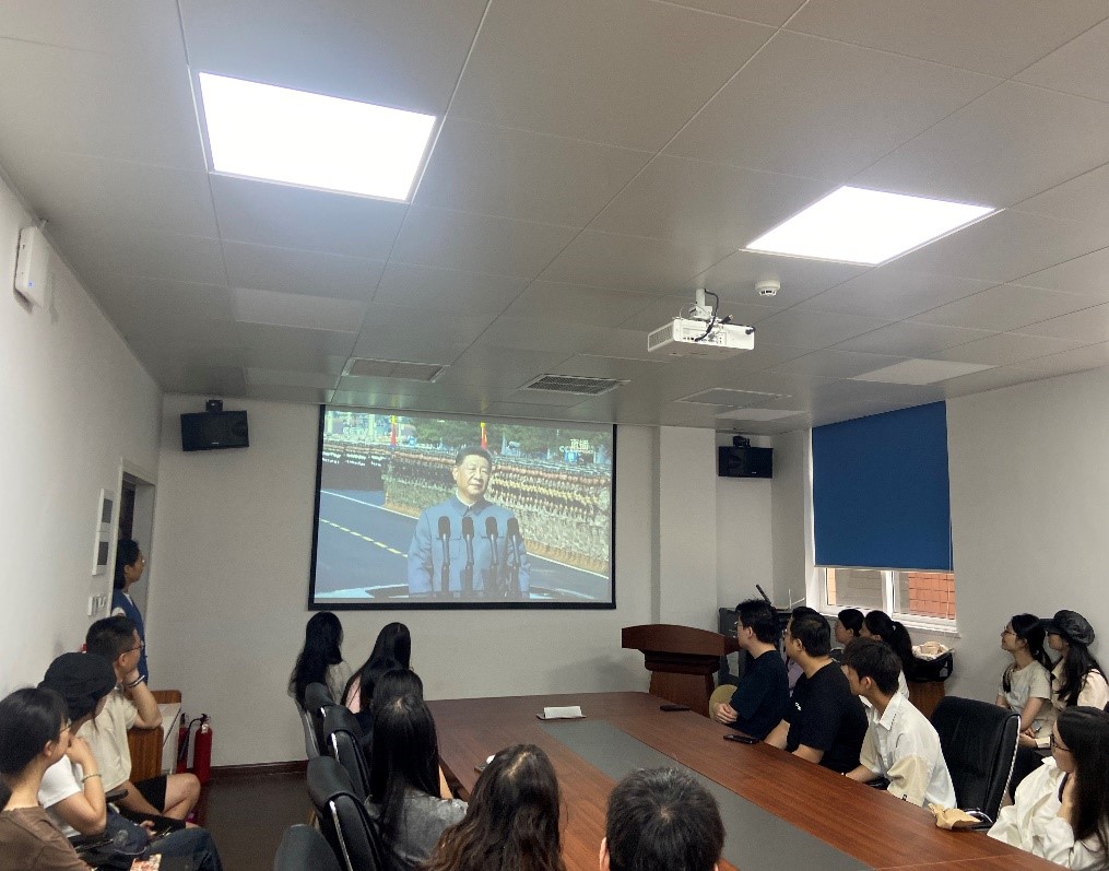 食品研究生第二党支部全体党员在望江校区纺工楼204集中收看纪念大会。全体党员聚精会神,认真学习习近平总书记在纪念大会上的重要讲话精神,深刻感悟革命先辈为民族独立和人民解放建立的丰功伟绩。纪念大会盛况及其彰显的民族精神与深远历史意义,在每一位党员心中引起强烈共鸣。