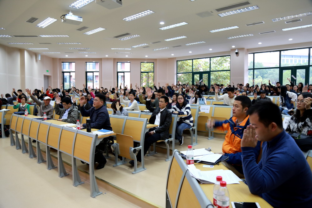 学生支部小组讨论 大会的第六项议程是举行换届选举。大会举手表决并通过了《中国共产党四川大学轻纺与食品学院党委委员和纪委委员换届选举办法》;举手表决并通过了总监票人、监票人名单,宣布了工作人员名单。廖隆理教授作为总监票人主持了选举大会。总监票人首先向大会报告了正式党员实际到会超过应到会人�80%及符合选举办法并可以进行选举的结果,监票人姚开教授和陈衍夏教授对票箱进行了展示,工作人员随后发放选票,总监票人对选票及其填写规则进行了说明,在工作人员投票后组织进行有序投票。投票结束后,总监票人首先组织对选票的发放、回收情况进行统计,待认定选举有效后宣布进行计票�