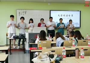 首先,是闻一多生平及作品分享板块。由刘昊和罗斯朗诵闻一多先生的《死水》拉开序幕。随后,由魏沧岚同学为大家展示讲解闻一多先生的生平事迹及作品,针对《红烛》和《死水》这两篇具有代表性的作品,魏沧岚同学做了深入赏析,让大家更加深刻地了解到它们背后的故事,也让大家感受到了闻一多先生深深的爱国主义情怀。接着,主持人邀请刘书记与王老师一起加入朗诵队伍,以一首闻一多的《红烛》结束了本次分享。