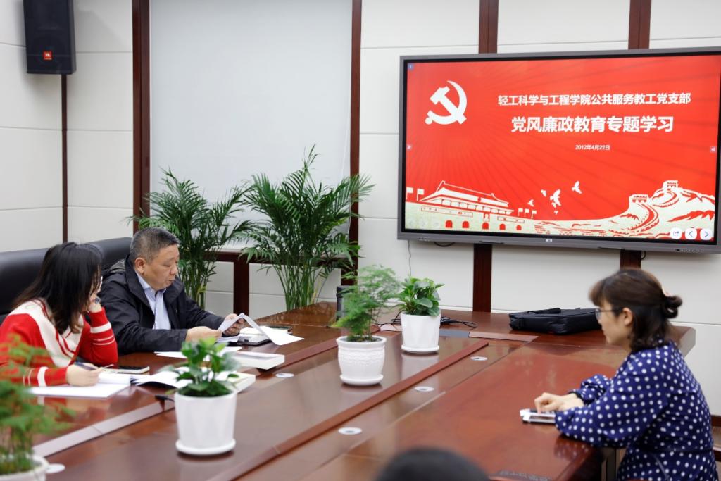 公共服务教工党支部在纺工附楼205会议室开展政治理论学习、党史学习教育专题学习暨党风廉政教育专题学习。党支部全体党员和公共服务非党员教职工一起参加了学习。