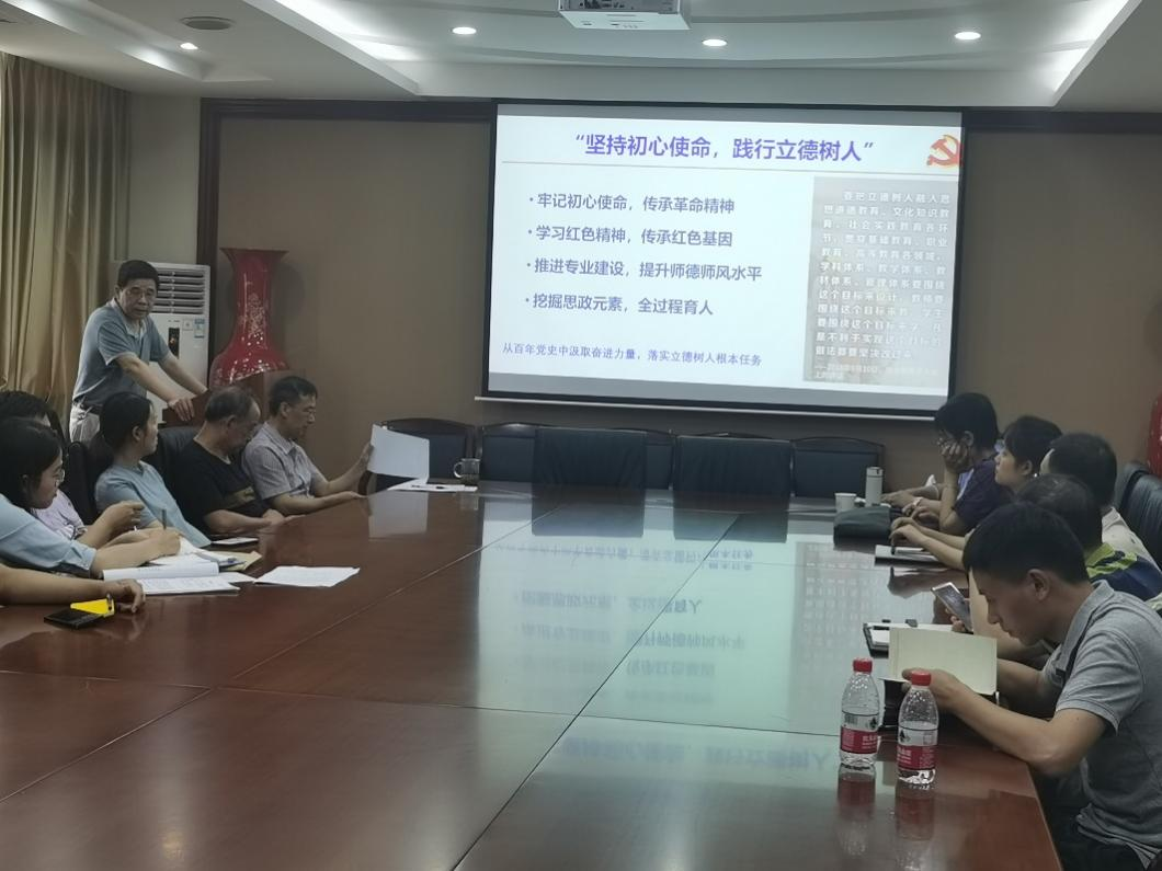 彭必雨副院长为皮革教工党支部全体党员作了《学习党史,坚守初心,立德树人》的专题党课。