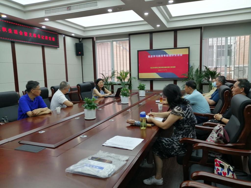 2021年7月7日下午,离退休教工党支部在纺工附楼205会议室,召开党史学习教育专题组织生活会。