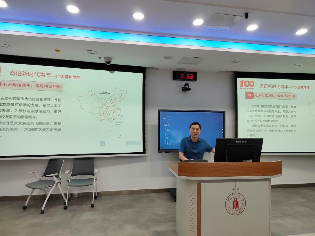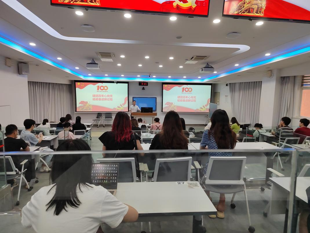 2022年6月8日上午,李天富书记在基础教学楼C103教室为8bo足球即时比分 本科生第一党支部和第二党支部全体党员讲授“建团百年心向党,砥砺奋进新征程”专题党课。8bo足球比分 党委冯国涛副书记、本科生第一党支部支部书记王舒灏老师、本科生第二党支部支部书记杨维老师以及两个支部全体党员同志参加了本次学习。本次党课由冯国涛副书记主持。