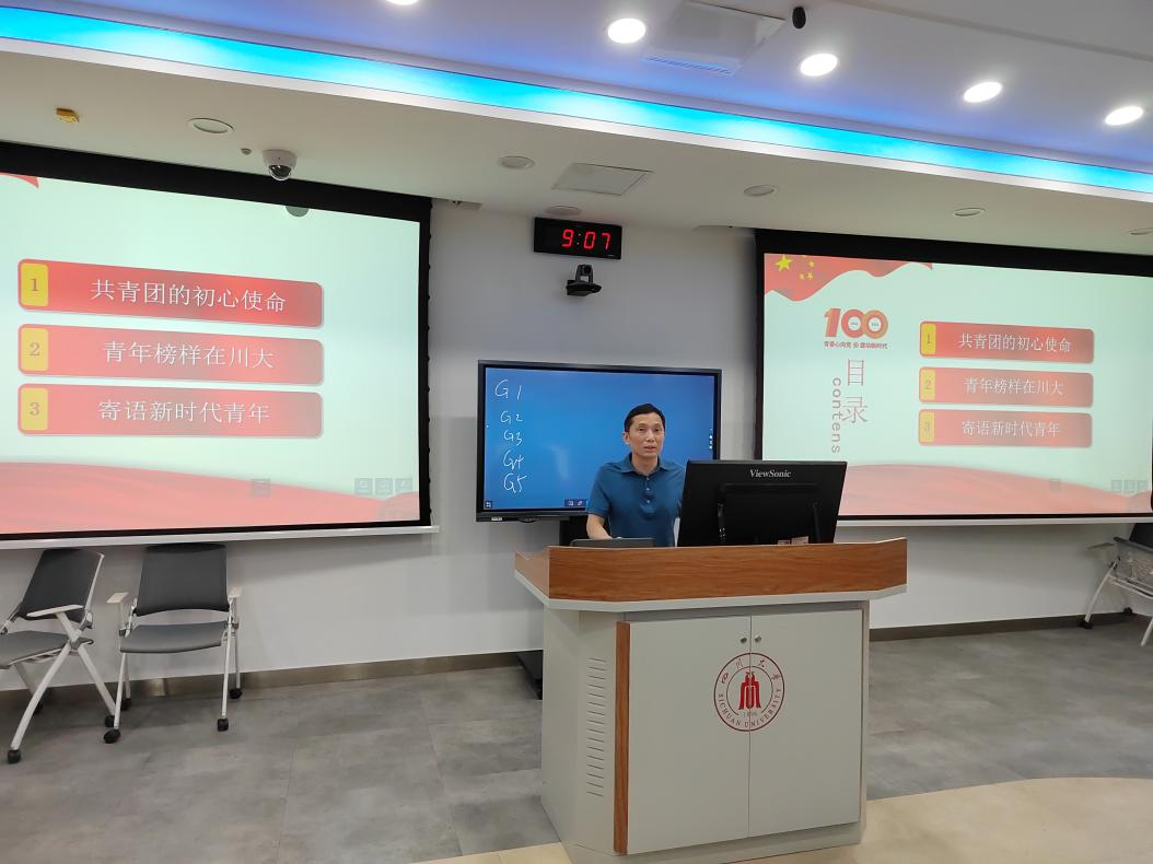 在本次专题党课中,李天富书记以习近平总书记在庆祝中国共产主义青年团成立100周年大会上的讲话为主题,从共青团的初心使命、青年榜样在川大、寄语新时代青年等三个方面进行讲授。首先,李书记与党员同志们一起回顾了共青团在新民主主义革命时期、社会主义革命和建设时期、改革开放和社会主义现代化建设新时期、中国特色社会主义新时代不同阶段的初心使命,指出共青团的初心使命就是“坚定不移跟党走,为党和人民奋斗”,并分享川大共青团与青年人在不同历史阶段不懈奋斗的发展历程与感人故事。随后,李书记列举了8bo足球比分 在不同时期涌现出的一代代青年榜样,如张铨教授、林炜教授、郭俊凌教授、陈治军校友、李文琴校友、朱彬校友以及身边的李静雯同学、倪正航同学等的成长故事,他们都曾为8bo足球比分 的学科建设、专业发展、行业进步作出了巨大贡献,为身边同学树立了良好榜样,他们展现了轻工人在各历史阶段持之以恒地践行着共青团的初心使命。