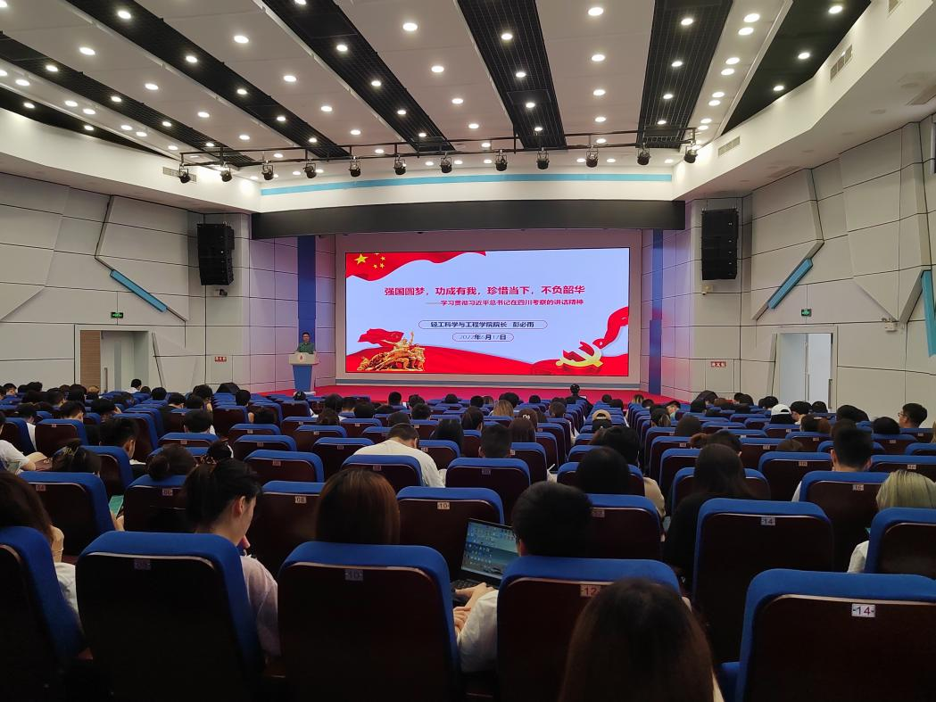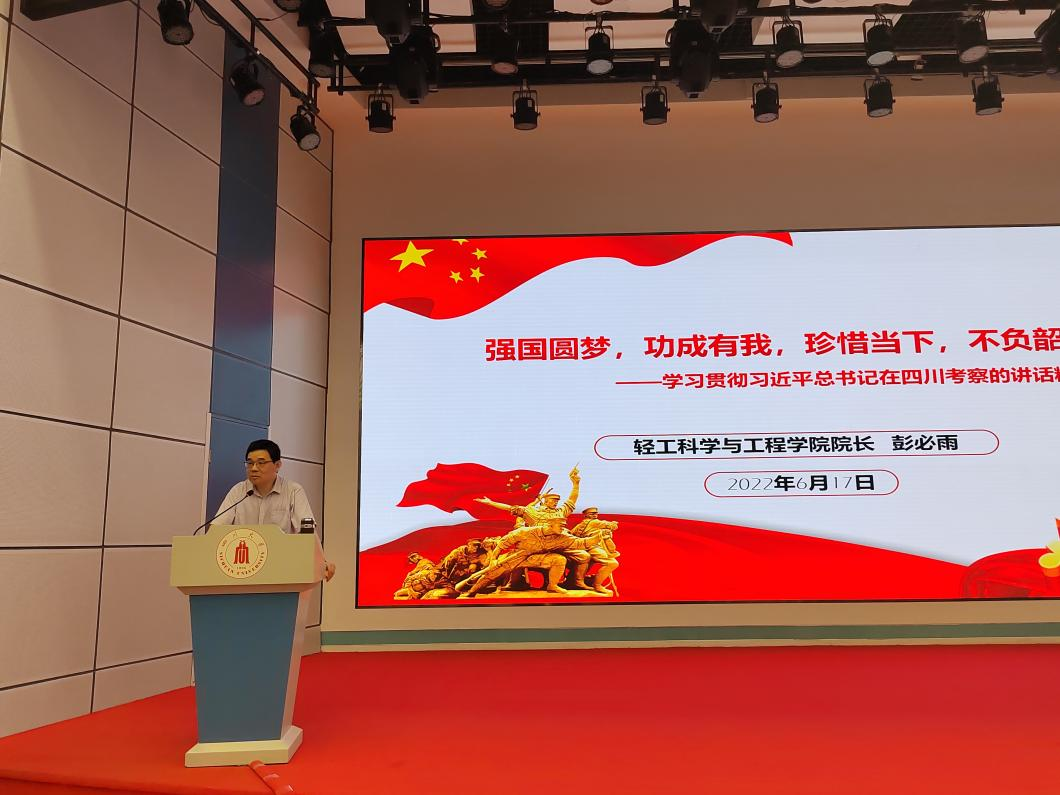 紧接着,彭必雨院长带领同学们一起回顾了党的十九大以来习近平总书记对四川两次考察的主要内容,并以“强起来”为关键词解读了习总书记今年6月的考察重点。彭院长从粮食安全保障措施要强、文化自信文化要强、科技创新科技要强、青年成长要强等四个维度,结合四川大学学科发展方向、育人理念以及8bo足球比分 专业特色等方面,鼓励青年学子们脚踏实地,在实践中一步步成长起来、一步步强大起来。