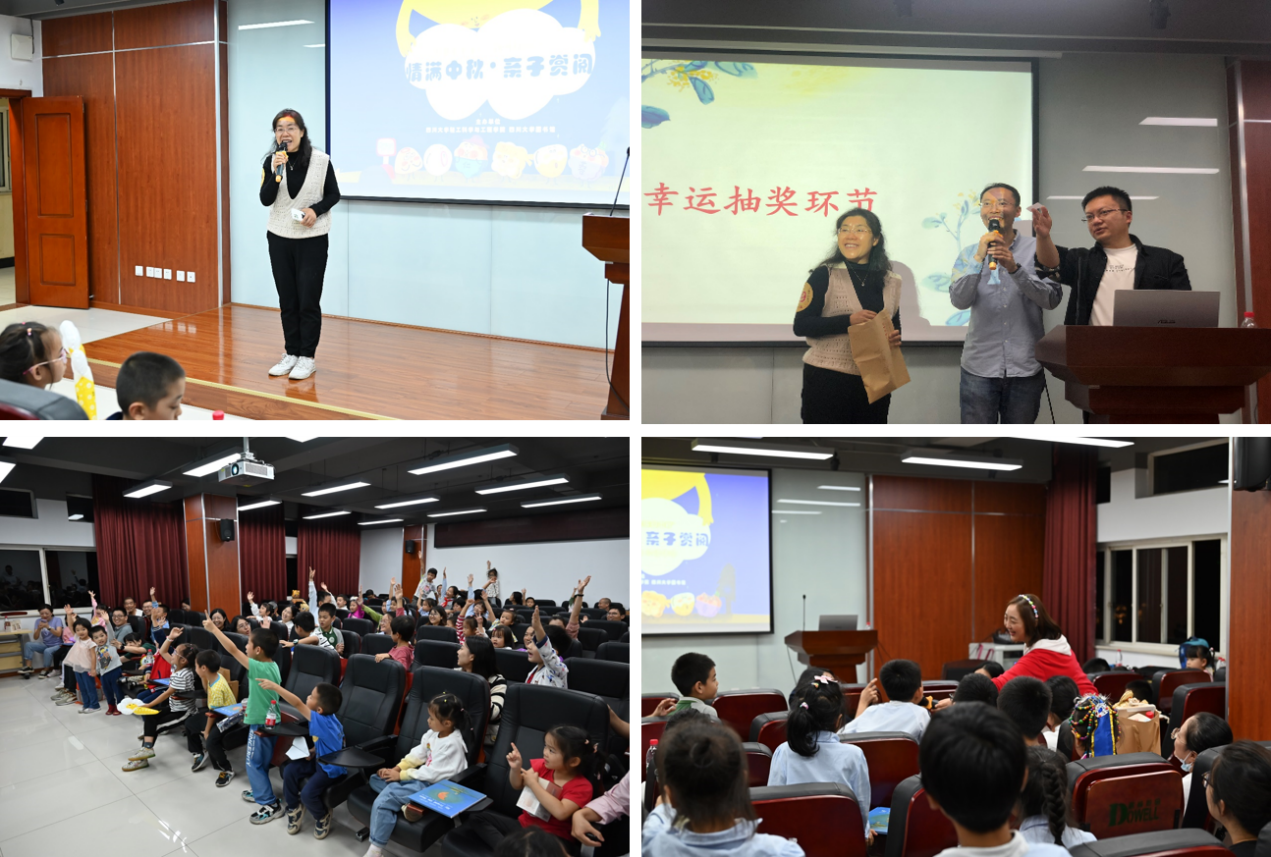 为推动阅读活动走进更多分工会和家庭,在月饼烘烤期间,教职工家庭来到轻工科学与工程学院皮革楼报告厅参加活动的第二个环节——绘本共读。图书馆党委副书记兼纪委书记、副馆长杜小军致辞,对参加此次活动的家庭和工作人员表示感谢,致以节日的祝福,与轻工科学与工程学院工会陈胜主席共同为小朋友抽取幸运奖。随后,图书馆樊伟老师主持诗词填空游戏,小朋友们积极抢答,并获得图书馆文创礼包。在热烈的活动气氛中,图书馆工会“书香川大•亲子悦读”活动负责人邹艳老师带领家庭共读绘本《从前有个月饼村》,小朋友们认真的聆听绘本故事并踊跃参与故事讨论,让孩子们真正享受阅读、爱上阅读,大家在快乐的氛围中感受到中国传统文化的魅力,寄托对花好月圆的美好期许�