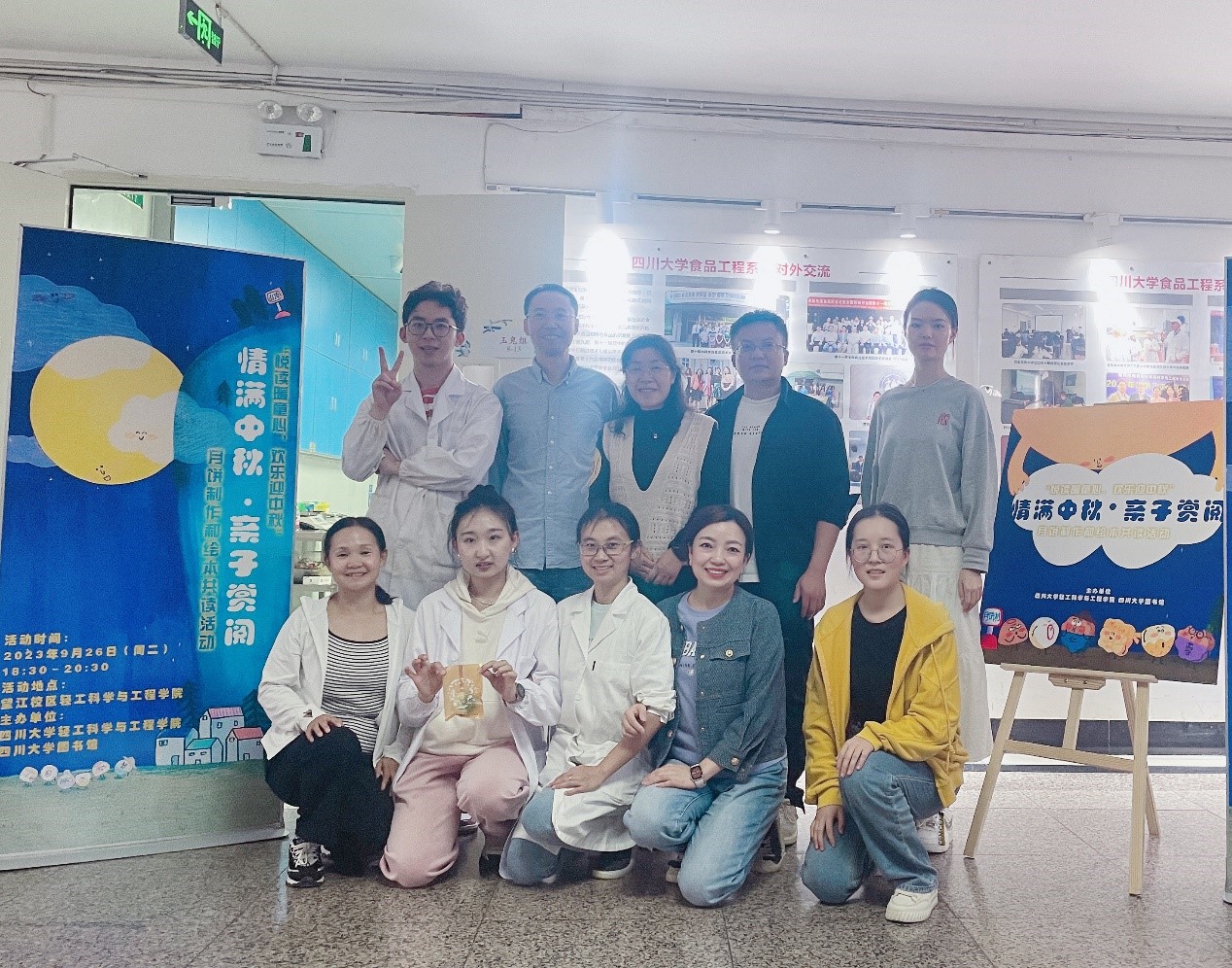 金秋送爽,桂子飘香,为弘扬中华传统文化,建设书香校园,在中秋、国庆、校庆三节来临之际,2023�9�26日晚,四川大学轻工科学与工程学院分工会、图书馆分工会联合举办了以“情满中秋•亲子赏阅”为主题的月饼制作和绘本共读活动�40组教职工家庭代表来到轻工科学与工程学院,一起制作低糖低油而且美味的“川大”版定制月饼,然后共读中秋主题绘本,教职工和孩子们共度精彩难忘的佳节亲子时光�