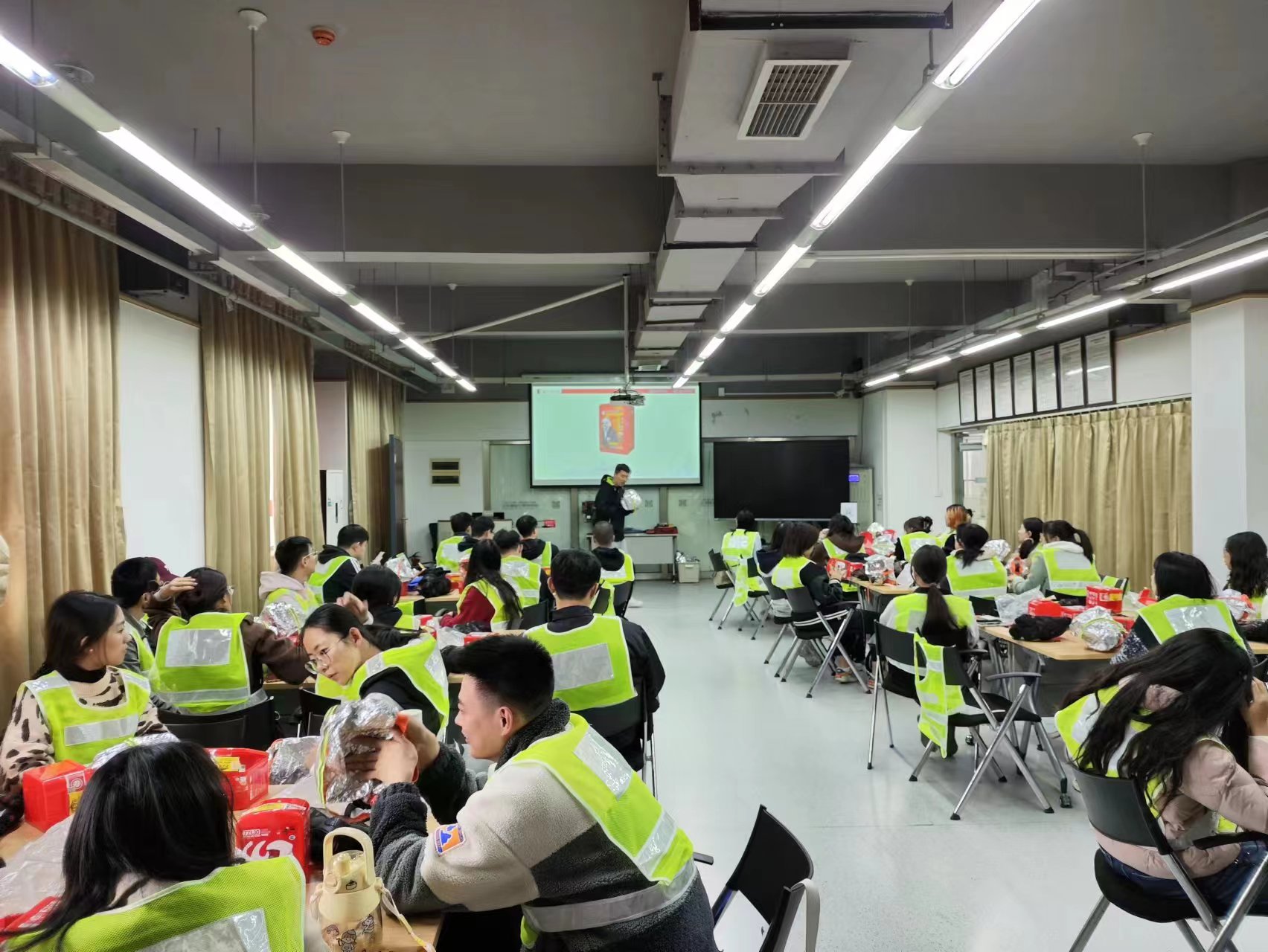 本次培训分为两部分,第一部分为火场应急逃生培训,第二部分为初期火灾处置培训。第一部分的授课老师首先了火场逃生的基本原则和逃生装备的使用方法,然后分别以小组和个人为单位,在模拟火场中进行了逃生演练�