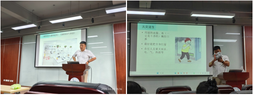 赵阳工程师根据本年度安全生产月主题,首先根据相关法律法规介绍了逃生通道、疏散通道的相关知识,并就常见的堵塞消防通道的问题及整改方案进行了讲解。随后,赵阳工程师结合具体火灾案例,阐述了堵塞消防通道的危害。最后,赵阳工程师结合8bo足球即时比分 楼栋实际情况,讲解了应急逃生的基本技巧,并现场演示了消防面罩的使用方法。