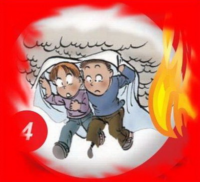 4/10厚物护身�:确定逃生路线后,可用浸湿的棉被或毛毯、棉大衣盖在身上,以最快的速度钻过火场并冲到安全区域。不能用塑料或化纤等类物品来保护身体,否则会适得其反�