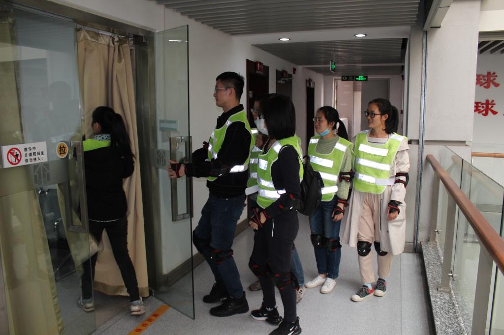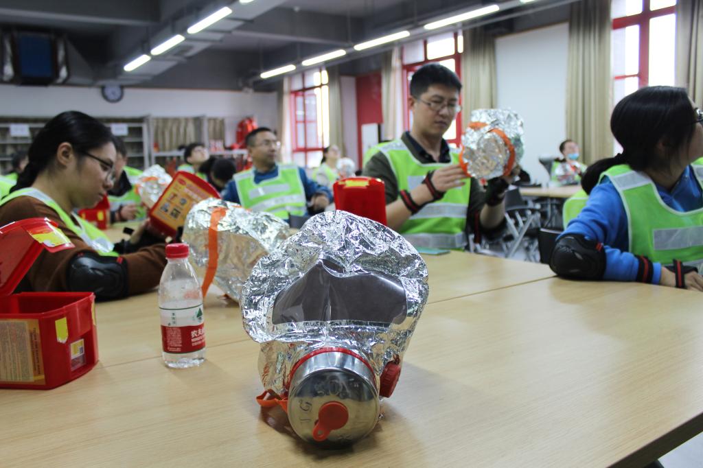 第一阶段的培训主要解决火灾是否有扑救的可能,在保证自身安全的前提下有效扑救;无法扑救时,应选择尽快逃生,并报警。第二阶段主要解决如何安全逃生的问题,安全指示牌的作用,出口的快速寻找,湿毛巾、呼吸面具的使用,低姿逃生,手背试温等知识;参加培训的老师相互协助体验了“模拟逃生”的过程�