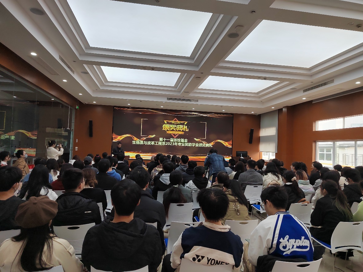 2023�12�8日下午,轻工科学与工程学院在皮革楼互联网中心隆重举行第十一届张铨基金暨生物质与皮革工程�2023年专业奖助学金颁奖典礼�