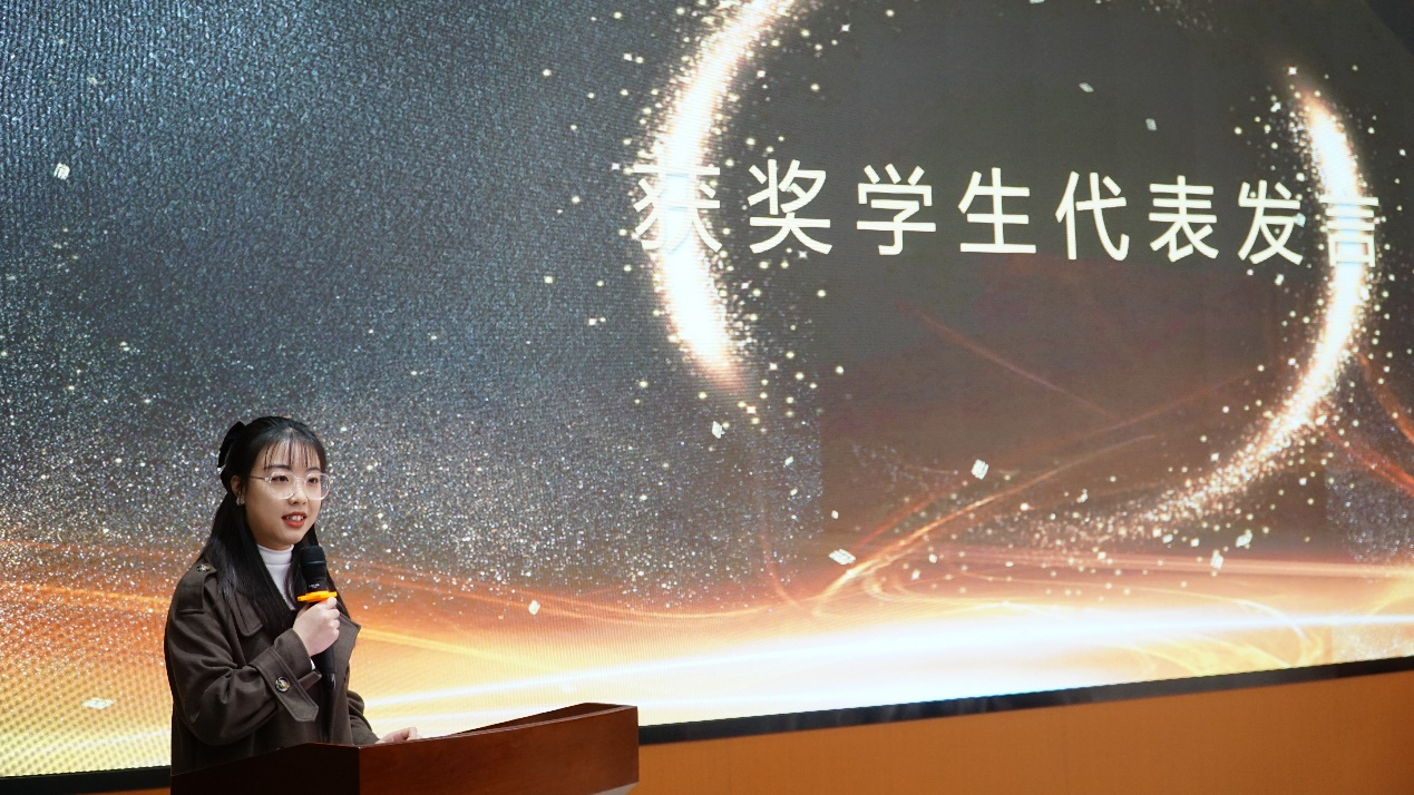 最后,2020级生物工程专业洪梦婷同学代表获奖学生发言。洪梦婷同学代表全体同学向学陀老师们和设奖单位表达最真挚的感谀洪梦婷同学表示将传承企业和校友们“不忘初心”的精神品质,把这份荣誉转化为不竭动力,不断追求知识的进步和创新的突破,不断提高自己的综合素质和实践能力,以更加饱满的热情、更加昂扬的斗志、更加刻苦的精神、更加坚韧的毅力去面对未来学习和生活中的挑战,不负时代、不负韶华,在青春的赛道上奋力奔跑�